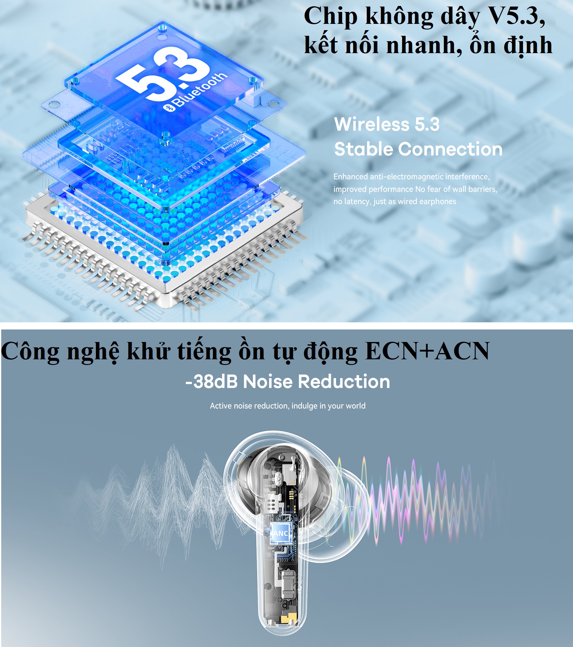 TAI NGHE KHÔNG DÂY QUỐC DÂN - PISEN BUDS P1 Hoàn toàn không dây, nhẹ như bông Công nghệ Bluetooth 5.3 nhanh hơn gấp đôi so với phiên bản Bluetooth 4.2. Năng suất cũng tăng lên