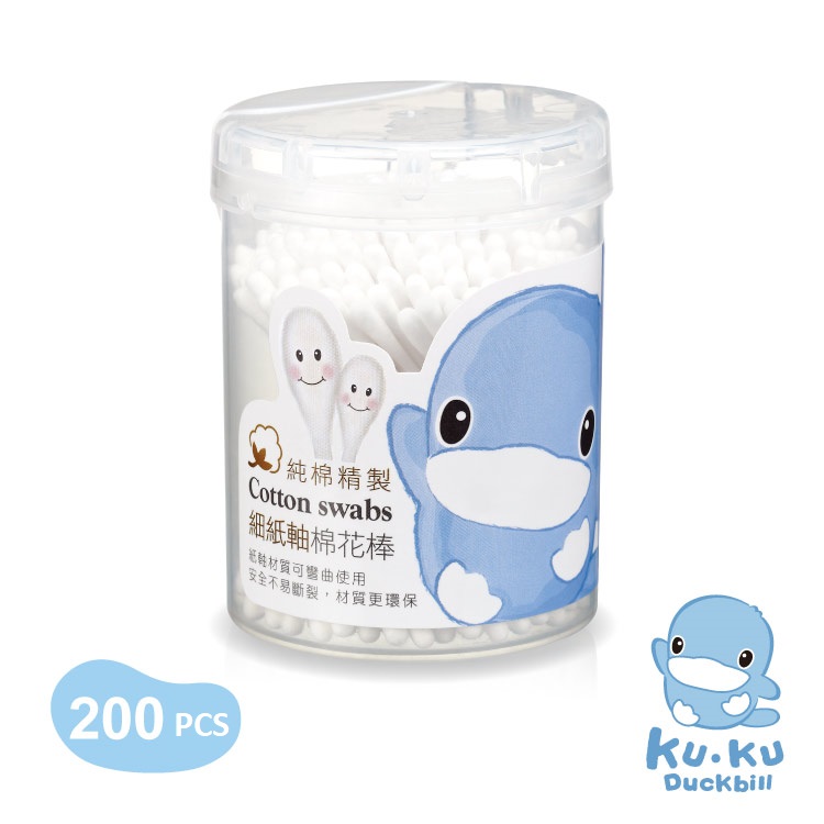 Tăm Bông Vệ Sinh Cho Bé KUKU KU1106 - 200 Cái làm bằng chất liệu cotton cao cấp, mềm mại, thấm hút nhanh chóng giúp vệ sinh tai, rốn... hiệu quả, không gây tổn thương bé.
