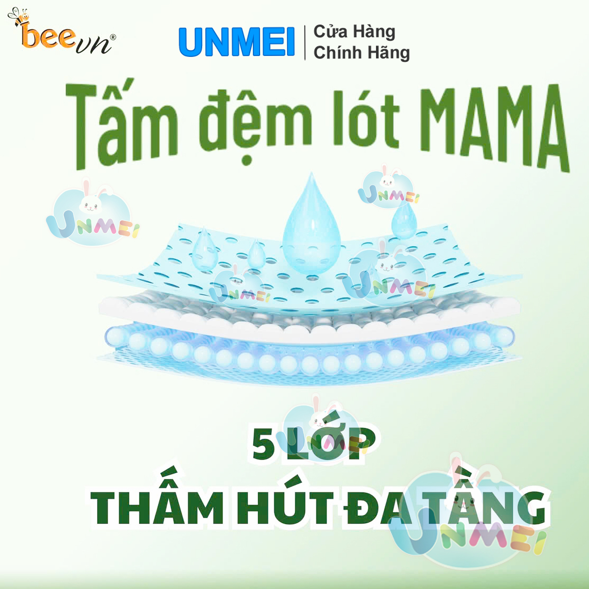 Mô Tả Sản Phẩm Tấm lót xu Unmei - Hàng Việt Nam chất lượng cao với thiết kế 3 lớp siêu thấm, ngăn chống tràn nhẹ nhàng cho làn da non nớt của bé, giúp