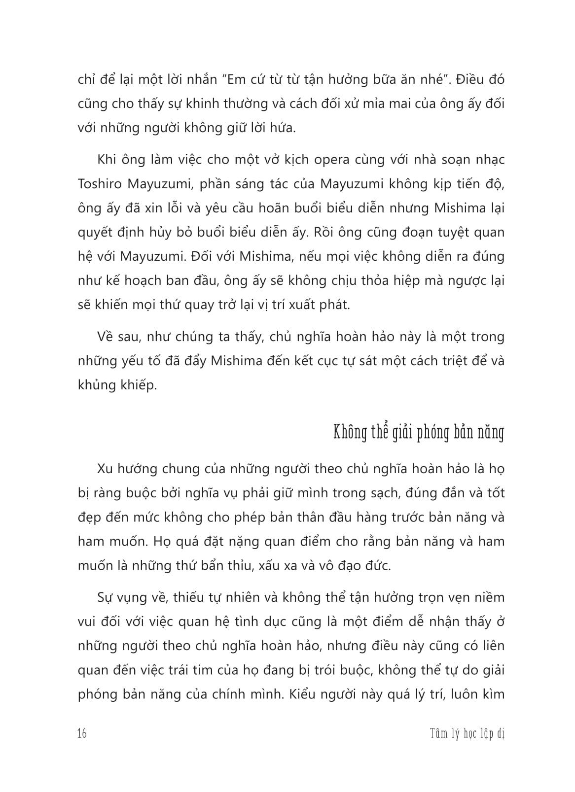 Mua tại TiktokTâm Lý Học Lập Dị - Bí Mật Của Những Hành Vi Bất Thường Hẹp hòi, ghen tị, nhạy cảm, tự ti, bạo lực, nghi ngờ, nổi loạn, tham lam,… Bạn có thấy những phẩm chất này quen thuộc không? Con người thực chất là một sinh vật đa nhân cách. Mỗi cá nhân đều mang một bản ngã tội lỗi và một con quỷ ẩn sâu bên trong m.ình. Tâm lý bất thường chỉ xuất hiện cực kỳ ngắn ngủi và có thể kiểm soát được trong hầu hết các tình huống. Tuy nhiên, vẫn có những người kéo dài trạng thái này và ngày càng cực đoan hơn, đẩy bản thân vào vùng tâm lý vượt xa lẽ thường. Trên thực tế, nhiều vĩ nhân hay thiên tài trong lịch sử đều bị mắc kẹt trong những căn bệnh tâm lý nghiêm trọng: