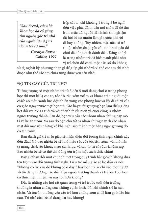 Các nhà tâm lý học đ.ã sử dụng những tiến bộ công nghệ gì để cải thiện các bệnh về tâm lý? Nội dung cuốn sách Tâm lý học phát triển này điểm qua các lý thuyết về phát triển tâm lý xã hội và phát triển trí tuệ, đặc biệt là thuyết của Jean Piaget và Lev Vygotsky. Sách cũng đề cập đến sự phát triển tâm lý xã hội và cảm xúc, cũng như cách vun bồi cho quá trình phát triển đó. Tâm lý học phát triển sẽ cung cấp cho chúng ta các kiến thức hữu ích với các chủ đề: