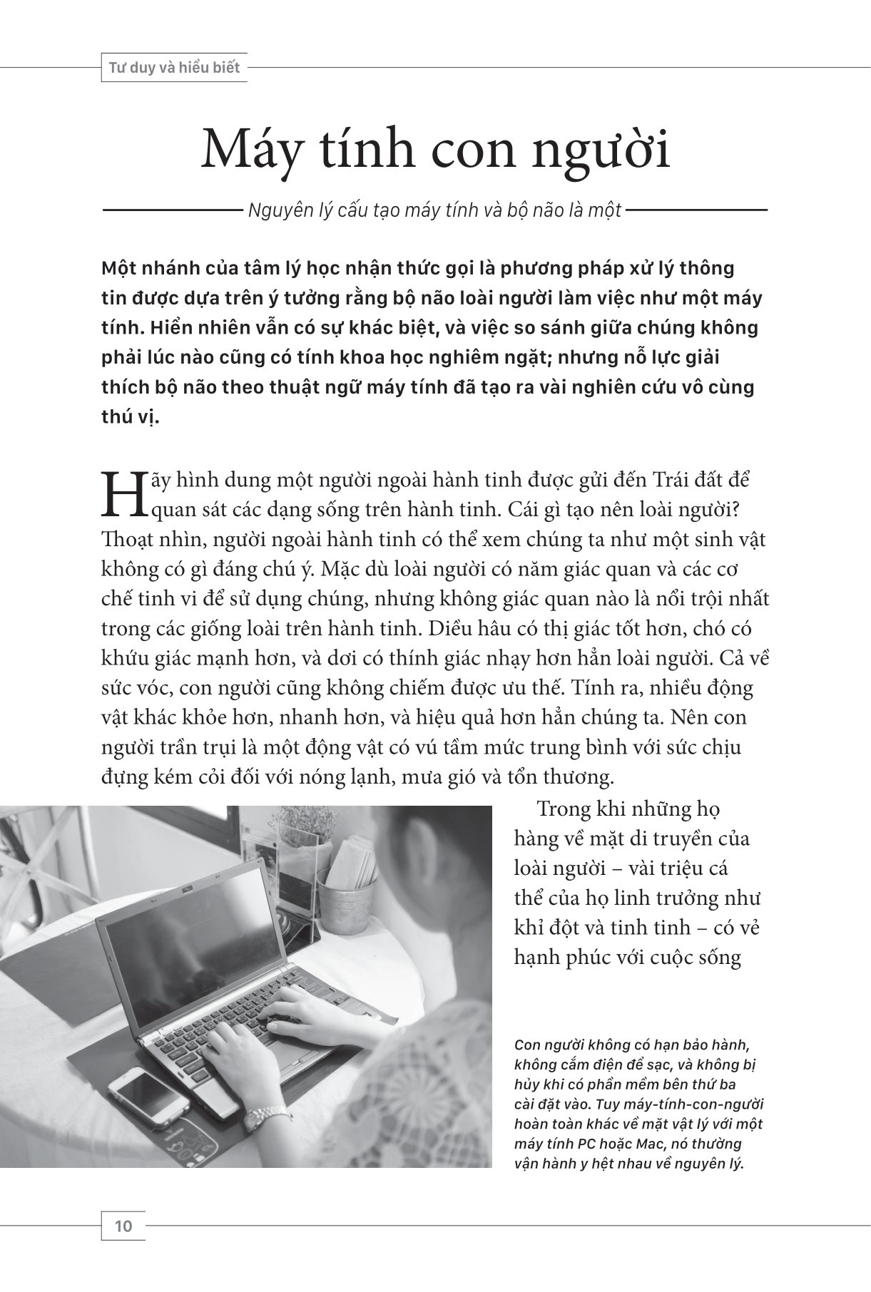 Tư duy và hiểu biết thuộc bộ Tâm lý học toàn thư, được viết và kiểm định bởi các chuyên gia tâm lý học, các nhà trị liệu tâm lý, nhà thần kinh học và các học giả. Sách gồm nhiều hình ảnh, sự kiện, thí nghiệm và phương pháp nghiên cứu khoa học, qua đó diễn giải cách bộ não chúng ta tiếp nhận, xử lý thông tin và giúp cơ thể tạo ra những phản ứng thích hợp, từ đó chúng ta có thể học tập, ghi nhớ, giao tiếp và sáng tạo. Sách cũng cung cấp tiểu sử và các lý thuyết tiêu biểu trong ngành tâm lý học, từ đó giúp độc giả hiểu thêm về lĩnh vực khoa học nghiên cứu chính bộ não và tâm trí mình.