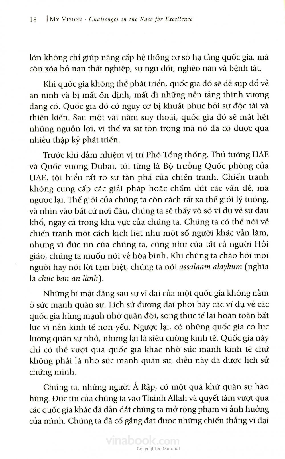 Tầm Nhìn Thay Đổi Quốc Gia “Người lãnh đạo tốt là người luôn đặt lợi ích của cộng đồng lên trước lợi ích của bất kỳ phe nhóm nào” - Mohammed bin Rashid Al MaktoumCuốn sách Tầm Nhìn Thay Đổi Quốc Gia...