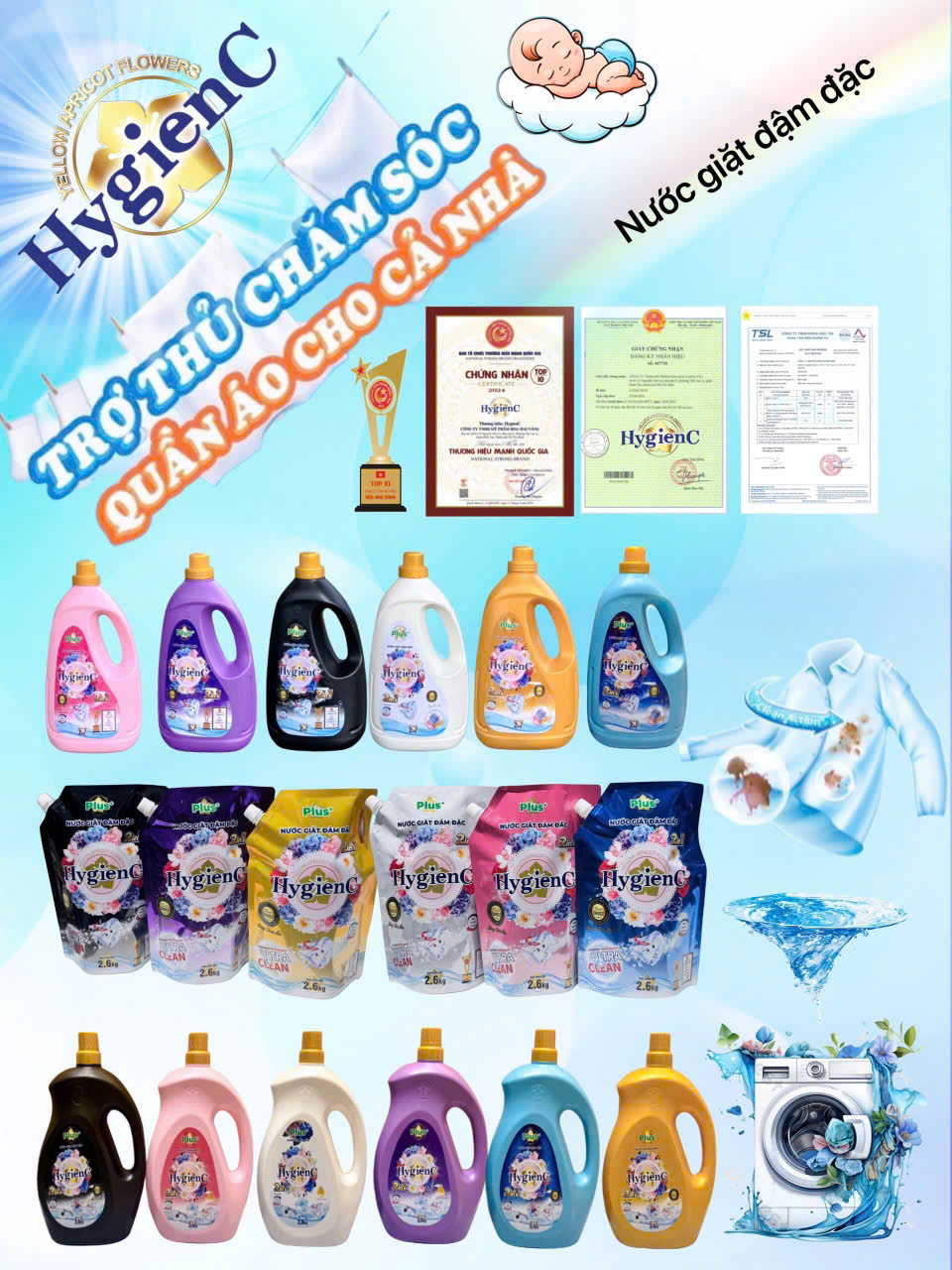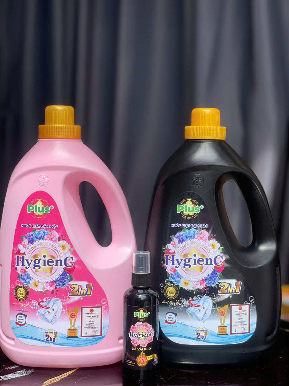 COMBO 2 can nước giặt xả 2 in1 HygienC PLUS 2kg, hang VN, Công nghệ thái đậm dặc, bền màu, lưu hương quần áo thơm mát dài lâu
