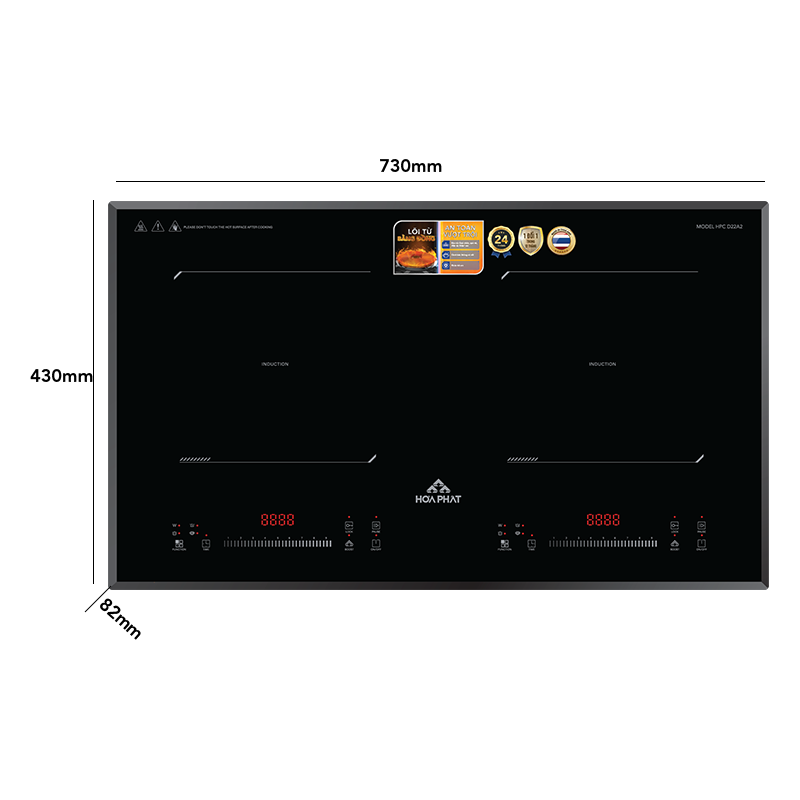 Thông số kỹ thuật + Bếp 02 từ + Mặt kính crystal siêu bền, chịu lực chịu sốc nhiệt + 09 dải công suất + Điều khiển cảm ứng độc lập dạng ẩn trực tiếp