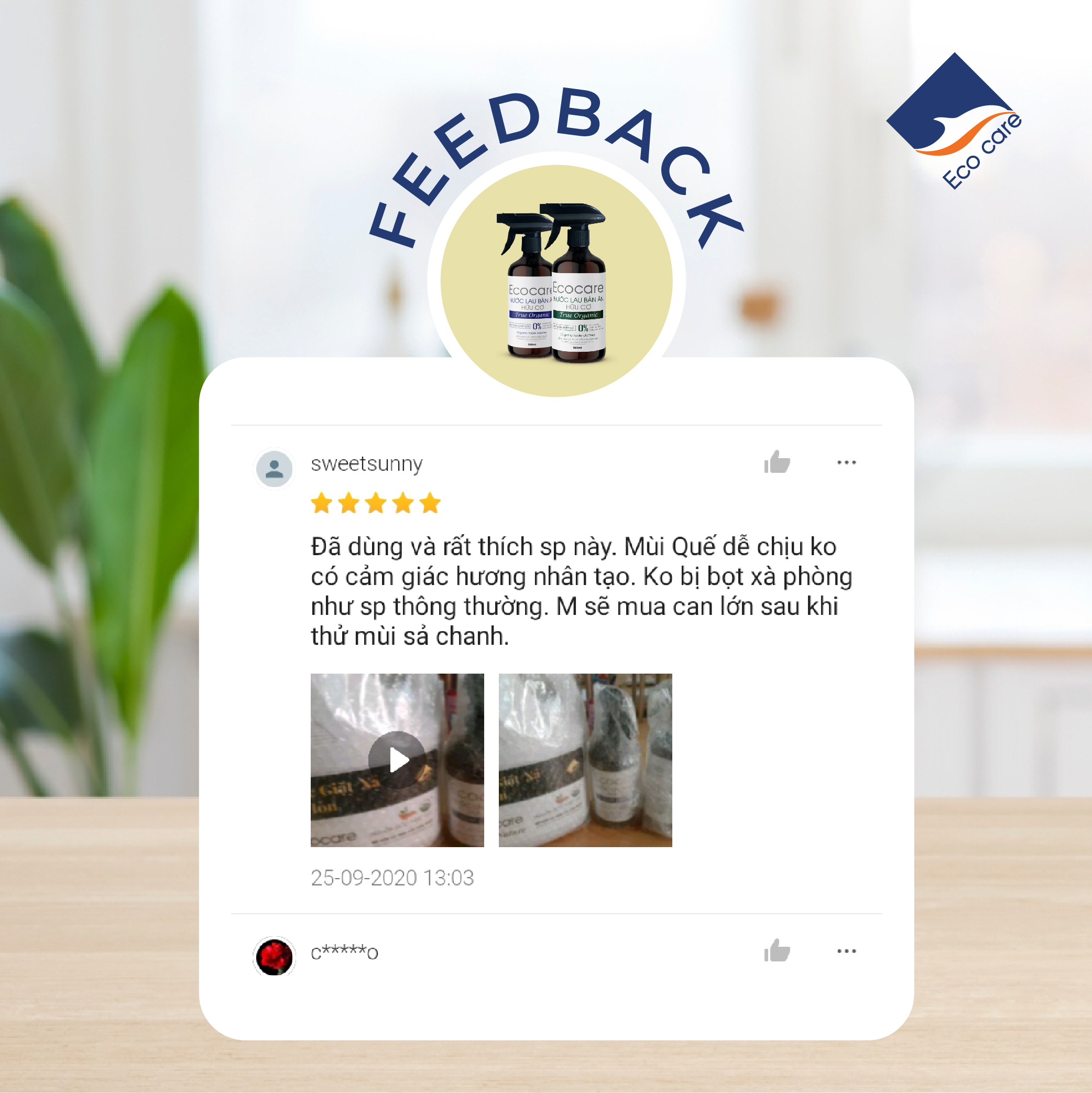 - Trước tiên, Công ty Ecocare xin cảm ơn Quý Khách hàng đã tin tưởng lựa chọn sản phẩm Nước Lau Bàn Ăn hữu cơ Bồ hòn Ecocare tinh dầu tự nhiên (Quế/Sả Chanh) 4000ml