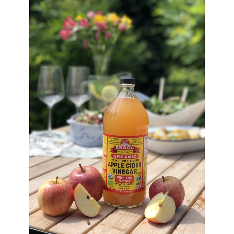 [Quà tặng kèm: Ống hút inox 304 tái sử dụng - bảo vệ môi trường cũng như bảo vệ men răng khi uống nước dấm táo Bragg] Hàng chính hãng Bragg USA - Phân phối bởi May Organic Quy cách: Chai thủy tinh 473ml & 946ml Chứng nhận hữu cơ USDA, loại bỏ mối lo táo biến đổi gen hay ô nhiễm thuốc trừ sâu! Con giấm "mother" là đám màng nhớt đám mây hoặc đôi khi ở trạng thái vón cục màu nâu lắng dưới đáy chai, được xem là thứ quyết định nên những lợi ích tuyệt vời nhất của giấm Bragg. Sản phẩm không lọc, không hấp khử trùng giúp bảo toàn các enzyme, axit amin cũng như các lợi khuẩn. Hạn sử dụng dài, luôn cập nhật mới. Không cần bảo quản lạnh. Lắc kỹ trước khi dùng để giấm cái 'mother' được phân phối đều khắp. NSX lưu ý: Giấm táo Bragg là sản phẩm tự nhiên lên men nên màu sắc, hương vị có thể khác nhau giữa các chai! Tương tự với giấm cái 'mother', hãy yên tâm nếu chai của bạn trông có vẻ như có ít hoặc không chứa con giấm vì chúng tôi cam kết phân phối đều dấm cái đến mọi chai Bragg Organic Apple Cider Vinegar! Với vô số tác dụng hữu ích của mình, sản phẩm cũng có rất nhiều ứng dụng đa dạng trong đời sống hàng ngày: Dùng chế biến thực phẩm: trộn salad, rau củ, chế biến món ăn với hàng trăm công thức khác nhau và hiện vẫn không ngừng được khám phá thêm mỗi ngày bởi người tiêu dùng khắp nơi trên thế giới. Chăm sóc sức khỏe, sắc đẹp: -Giảm cân, thanh lọc, thải độc: Hòa nửa thìa dấm táo Bragg với một cốc nước và uống 2 lần mỗi ngày. Bạn cũng có thể thêm dấm táo vào chế độ ăn hàng ngày trong một thời gian dài để thấy tác dụng tuyệt vời trong giảm cân, giảm cholesterol. -Tẩy da chết, trị mụn, thu nhỏ lỗ chân lông, kiềm dầu: Hòa dấm táo vào nước theo tỉ lệ 1:1 rồi dùng bông thoa khắp mặt hoặc vùng da mụn. -Dưỡng da, làm sáng, giảm nếp nhăn: Rửa mặt sạch, thoa lên mặt hỗn hợp dấm táo, nước với tỉ lệ 1:3. Mát xa nhẹ nhàng rồi xả sạch lại với nước mát. -Phục hồi da cháy nắng, xoa dịu kích ứng, tổn thương da. -Trị gàu, giúp tóc óng mượt: Pha 1/3 cốc giấm táo vào 4 cốc nước và xả sạch tóc sau khi gội. -Giảm viêm mũi họng, xoa dịu cơ bắp, khử mùi cơ thể. Chăm sóc nhà cửa: -Thay thế hóa chất vệ sinh nhà cửa: Đổ hỗn hợp dấm táo pha loãng với nước vào bình xịt và sử dụng. -Trừ cỏ dại: Thay thể thuốc diệt cỏ độc hại bằng hỗn hợp dấm táo, muối, nước rửa chén. -Thanh lọc không khí: Hòa dấm táo vào cốc nước hoặc đổ trực tiếp ra đĩa, để trong phòng hoặc gần nơi có mùi.