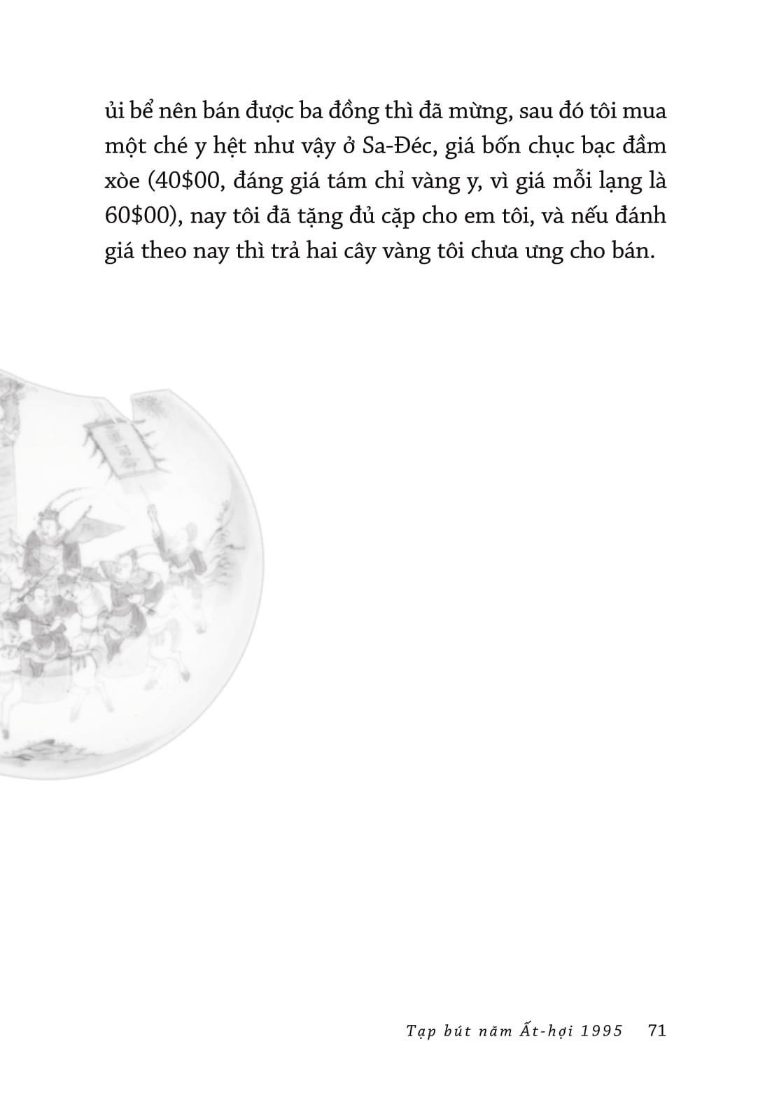 Mua tại TiktokTạp bút năm Ất- hợi 1995 là nỗ lực còn lại mà học giả Vương Hồng Sển dành cho cuộc đời. Sau khi viết xong tác phẩm này, ông cũng lìa bỏ trần gian. Không chỉ có những bài tùy bút hấp dẫn về con người và vùng đất Nam bộ, những lá thơ ông viết cho người thân, bạn hữu sẽ là một phần đặc biệt của tác phẩm này - chúng tiết lộ cho ta biết những gì ông trải qua lúc đó: mối trăn trở tuổi gia, sức khỏe, biến cố gia đạo, nghị lực và sự bền bỉ của ông trước sóng gió cuộc đời.