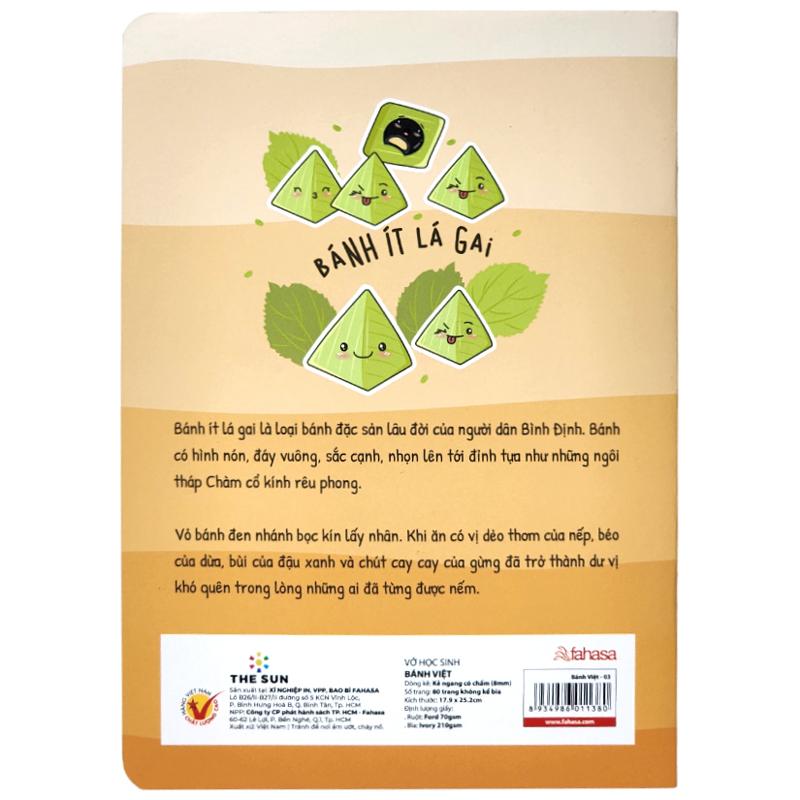 ✨Tập Học Sinh Bánh Việt - Miền Bắc - Kẻ Ngang Có Chấm - 80 Trang 70gsm - Fahasa 03 - Bánh Ít Lá Gai