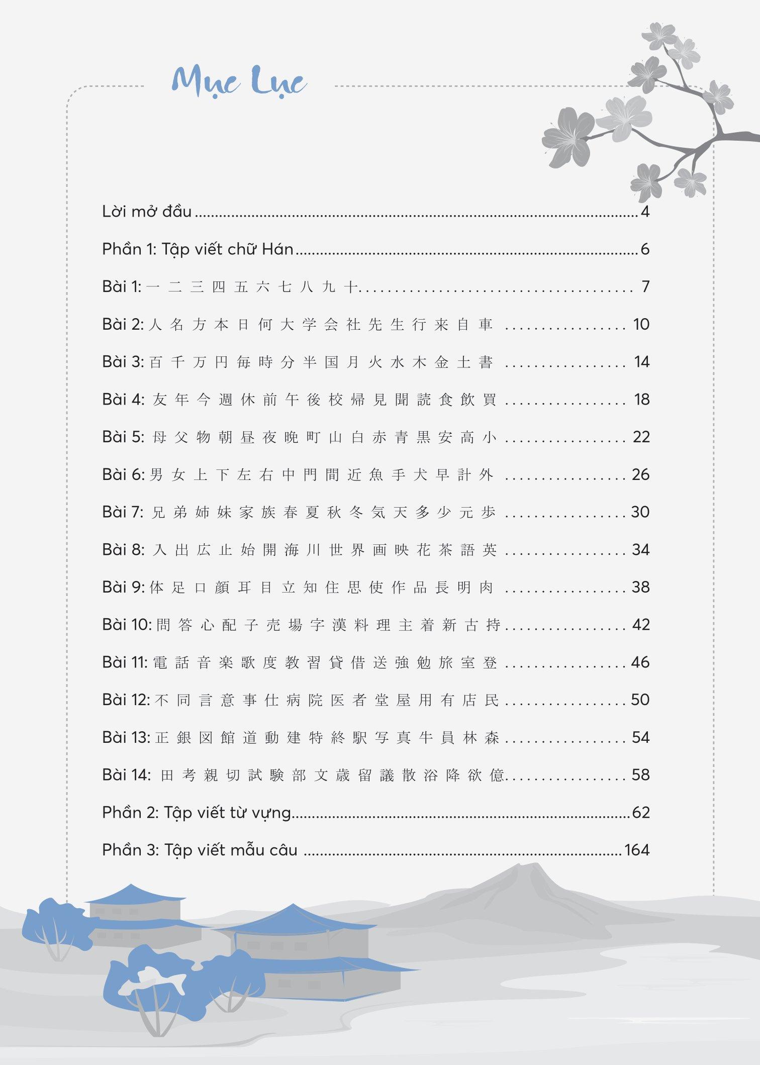 Phần 3: Tập viết mẫu câu dựa theo nội dung các bài học kiến thức tiếng Nhật cần thiết và phổ biến nhất hiện nay. Trong đó mỗi bài học đều có sự liên quan, tiếp nối, việc học sẽ trở nên hiệu quả và dễ dàng hơn.