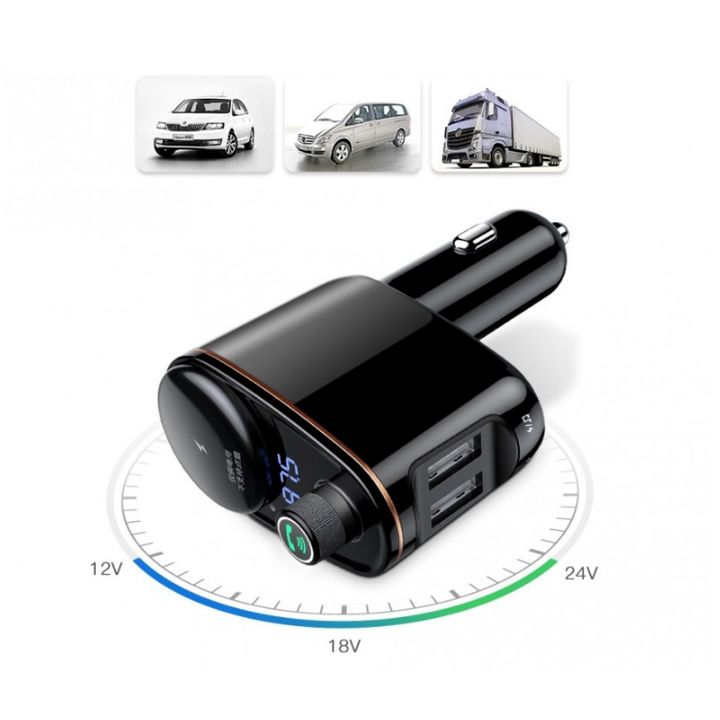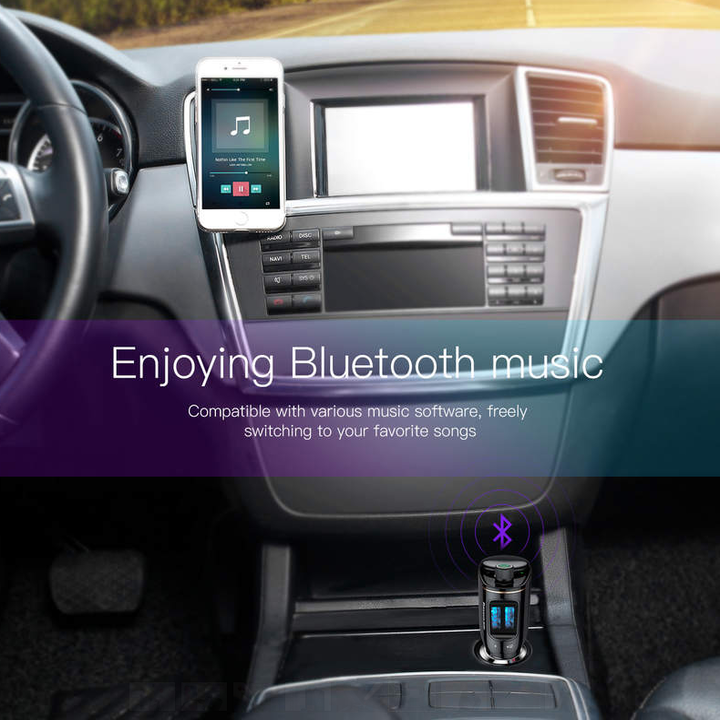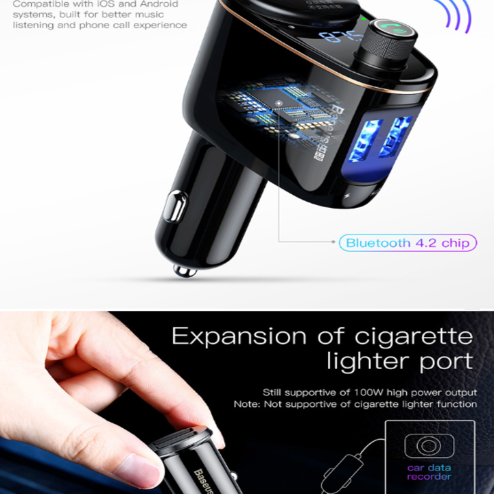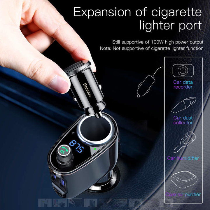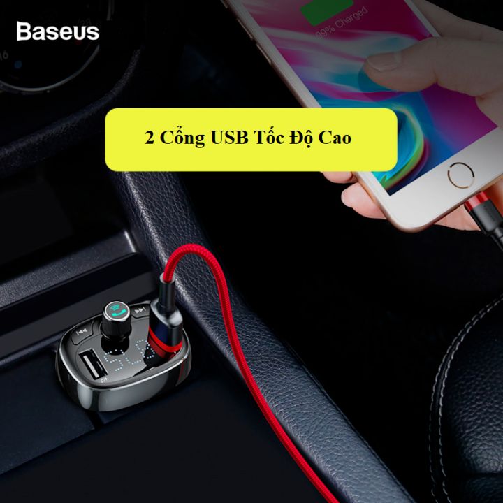 Tẩu nghe nhạc ô tô nhãn hiệu Baseus CCALL-RH01 - Được trang bị 2 cổng sạc chuẩn USB với dòng hỗ trợ lên đến 3.4A , Baseus CCALL-RH01 có thể cấp nguồn cho cùng