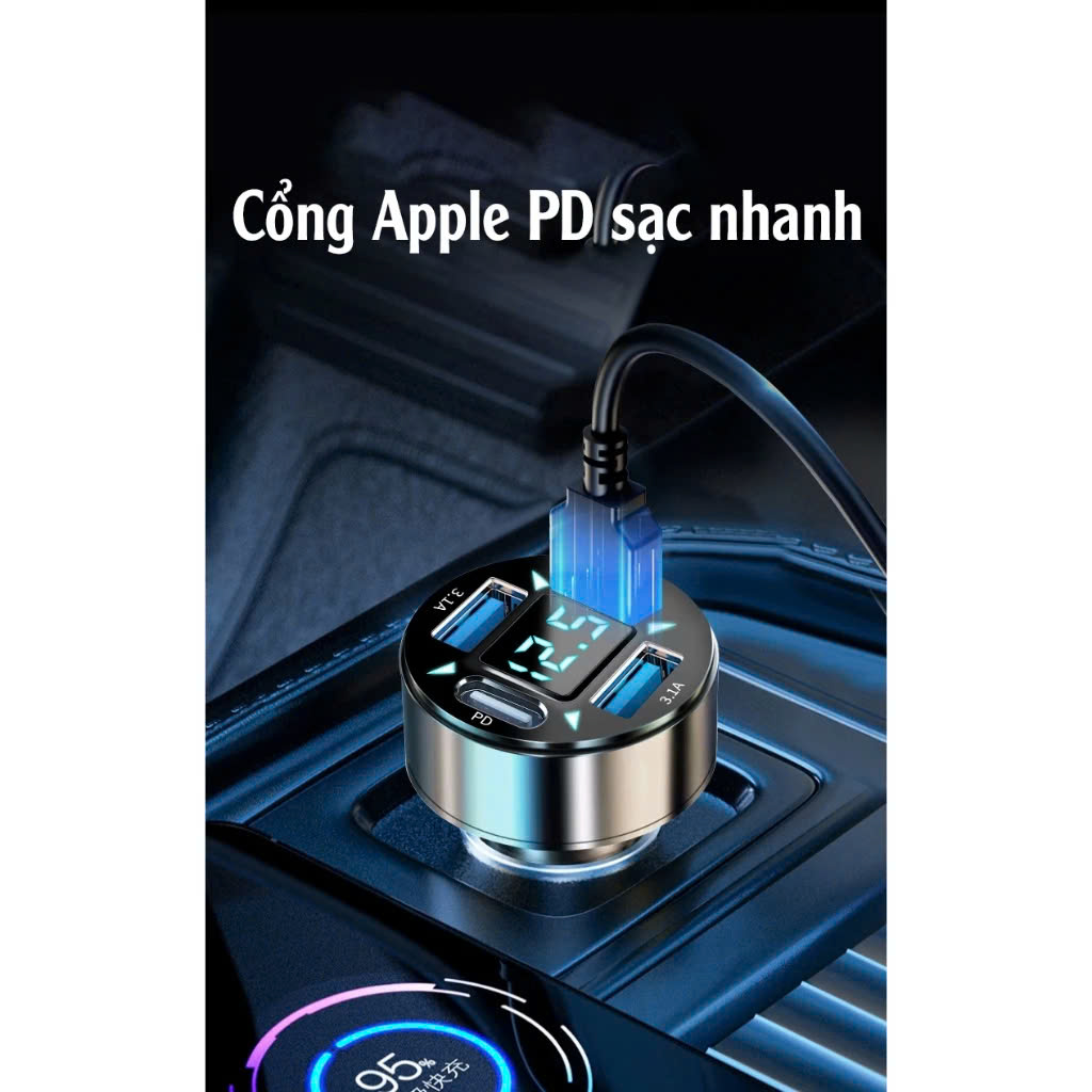 Tẩu Sạc Nhanh ô tô xe máy xe hơi tàu thuyền 67W bao gồm 2 cổng Type C và USB cho điện thoại