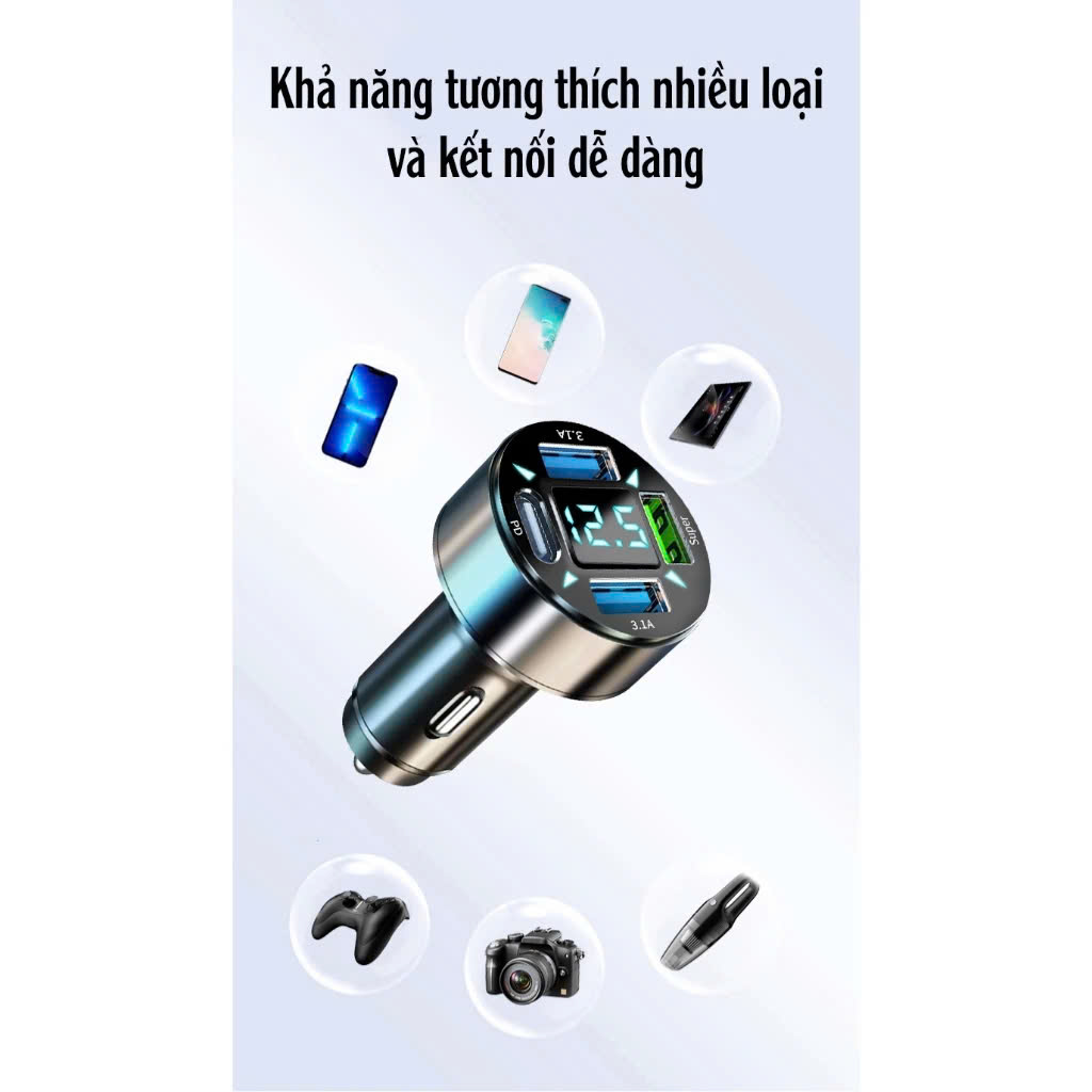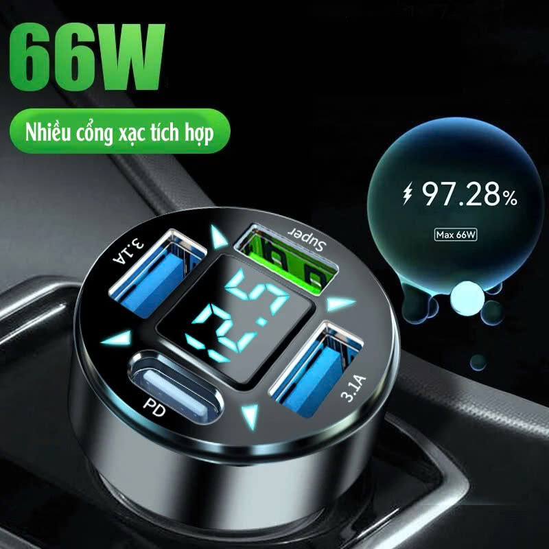 Tên sản phẩm - Sạc nhanh PD66W Màn hình kỹ thuật số 3.1A sạc ô tô bốn trong mộtChất liệu sản phẩm - Hợp kim nhôm ABSTrọng lượng sản phẩm “ 26GKích thước sản phẩm ' 3,8 * 3,8 * 6,2cmThông số sản ph...