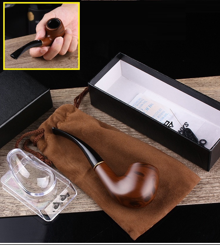 ✨Tẩu thuốc nhựa sừng cao cấp giả vân gỗ sang trọng, tặng kèm hộp đựng, đế nhựa và túi vải