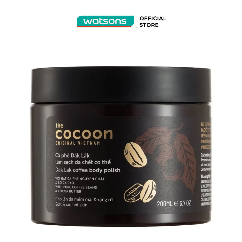 Tẩy da chết cơ thể cà phê Đắk Lắk Cocoon cho làn da mềm mại và rạng rỡ 200ml - LS036 - The Cocoon Original Vietnam Mô tả sản phẩm: - Tên sản phẩm: Tẩy