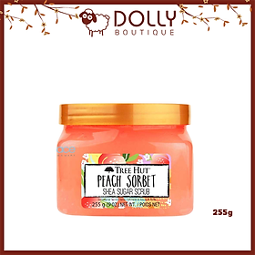 Tree Hut Shea Sugar Scrub Peach Sorbet 255g là sản phẩm tẩy tế bào chết toàn thân với công thức chứa các hạt đường tự nhiên giúp loại bỏ tế bào da chết, mang lại