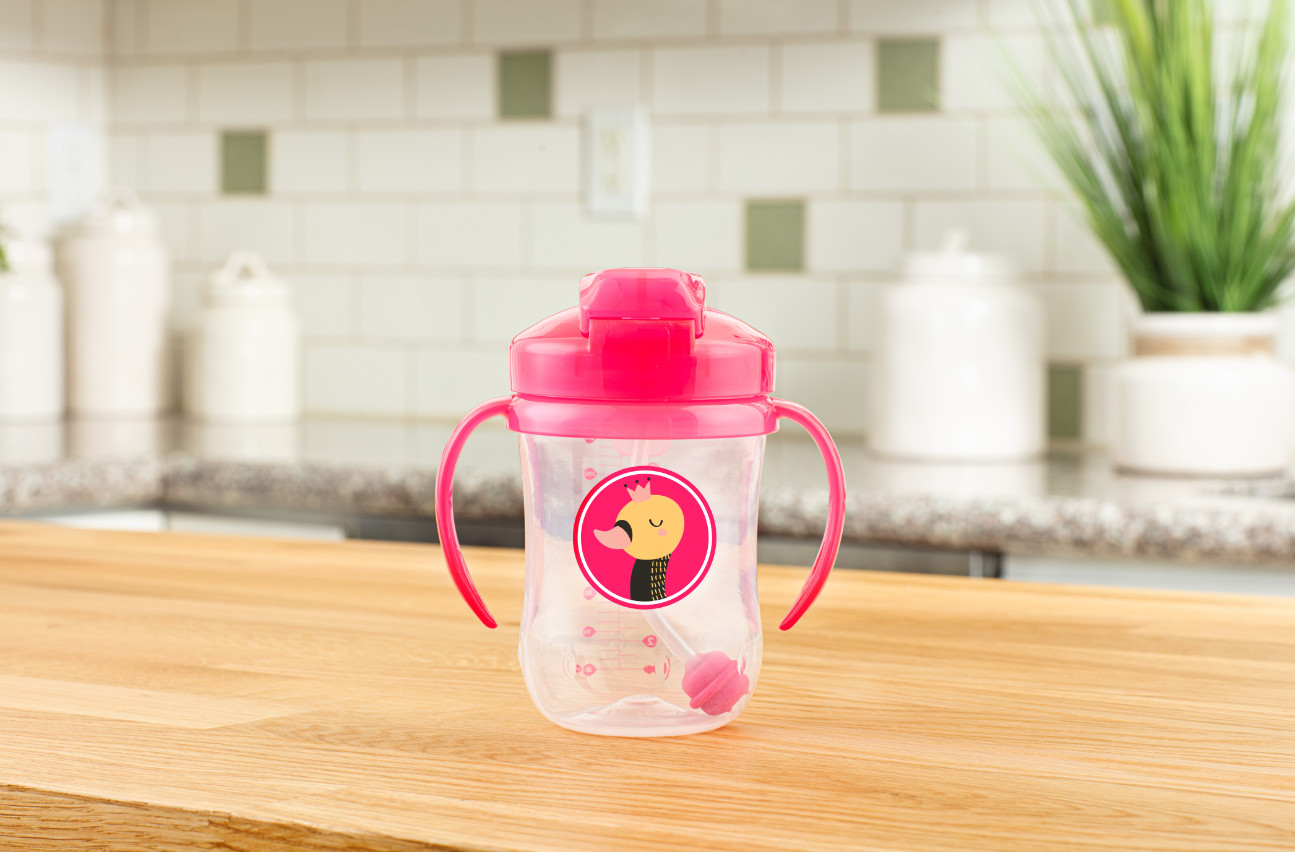 -  Chất liệu nhựa PP và silicone cao cấp, không chứa BPA, an toàn cho sức khỏe của bé; -  Thiết kế tiện dụng, ống hút sẽ bật ra ngay khi bạn nhấn, sử dụng