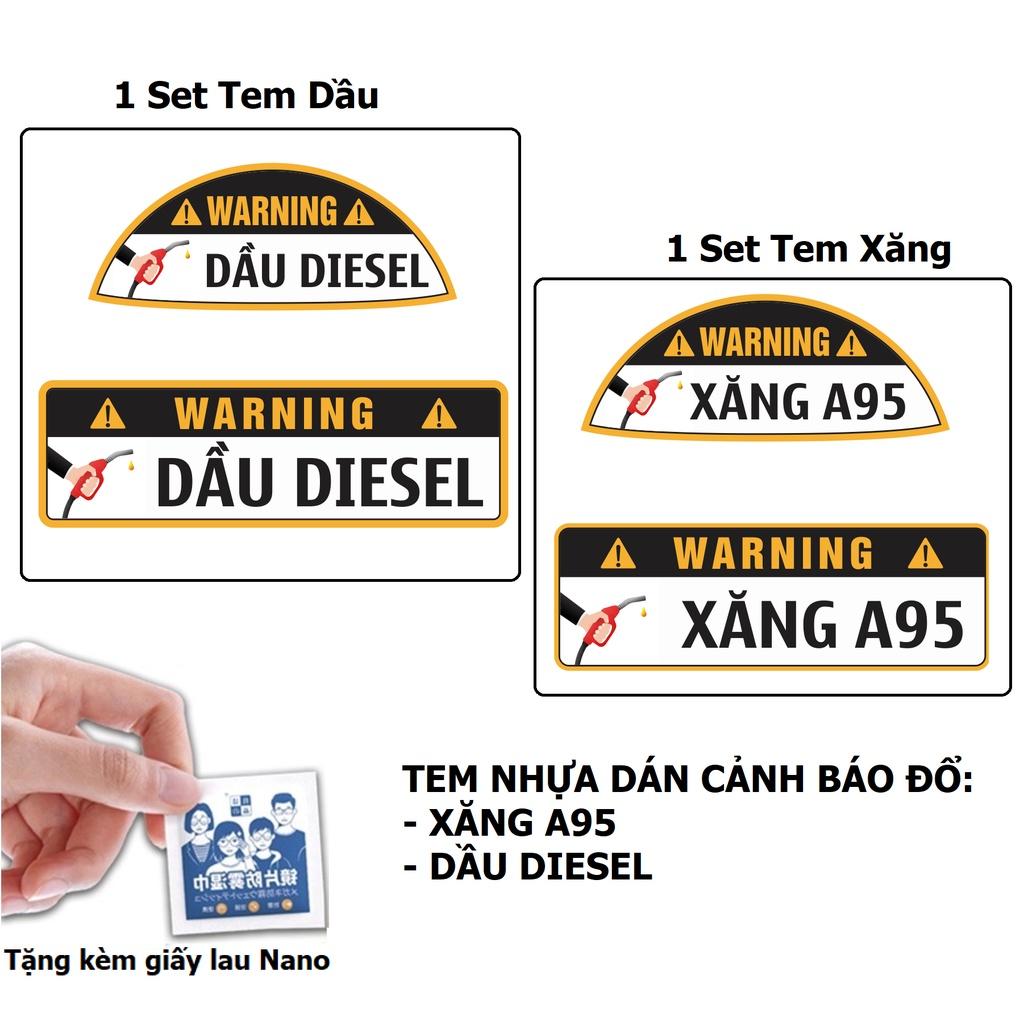 Tem Nhựa Dán Cảnh Báo Đổ Xăng A95 - Đổ Dầu Diesel Cho Xe Ôtô, Tiện Dụng Khi Đổ Xăng, Tránh Nhầm Lẫn