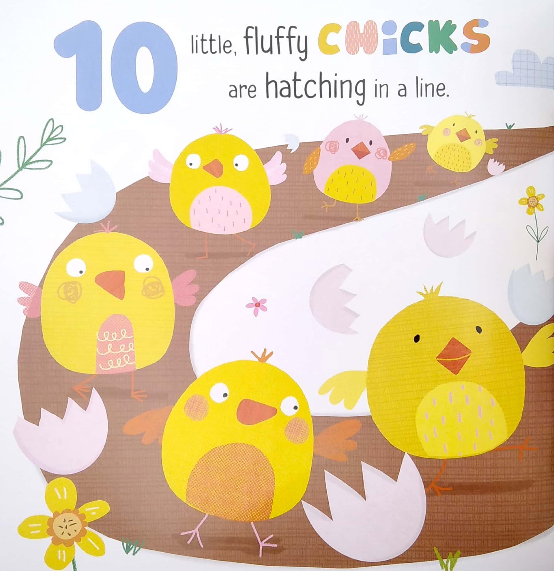 The sweet illustrations of ten little chicks provide plenty to see on each page