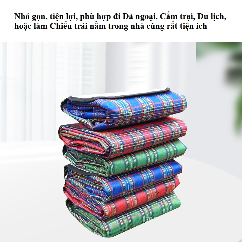 -Tấm thảm du lịch dã ngoại gấp gọn , bạt cắm trại cao cấp chống nước ,họa tiết caro màu sắc tươi mới , trang trí nhã nhặn xinh xắn có thể trải làm thảm