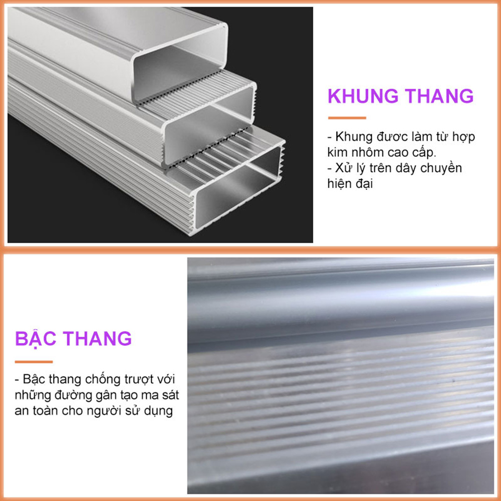 Mua tại Tiktok* Đặc điểm nổi bật: - Đạt tiêu chuẩn EN131 an toàn của Châu Âu. - Được thiết kế nhôm chống trượt. - Được sản xuất chất liệu nhôm với các bản lề, khóa an