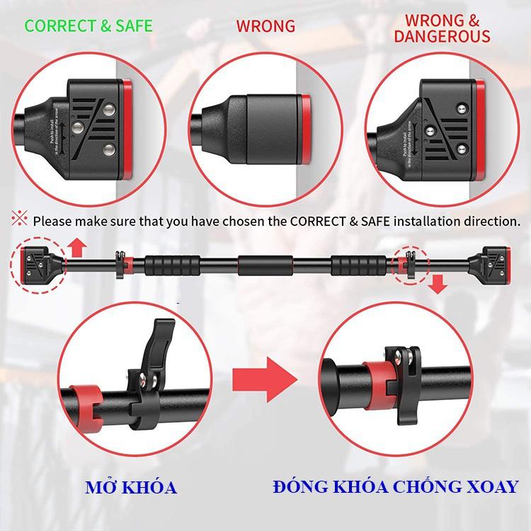 Thanh xà đơn gắn cửa, xà đơn treo tường chịu lực 200kg, chốt khóa chông trượt tập luyện Cao Cấp