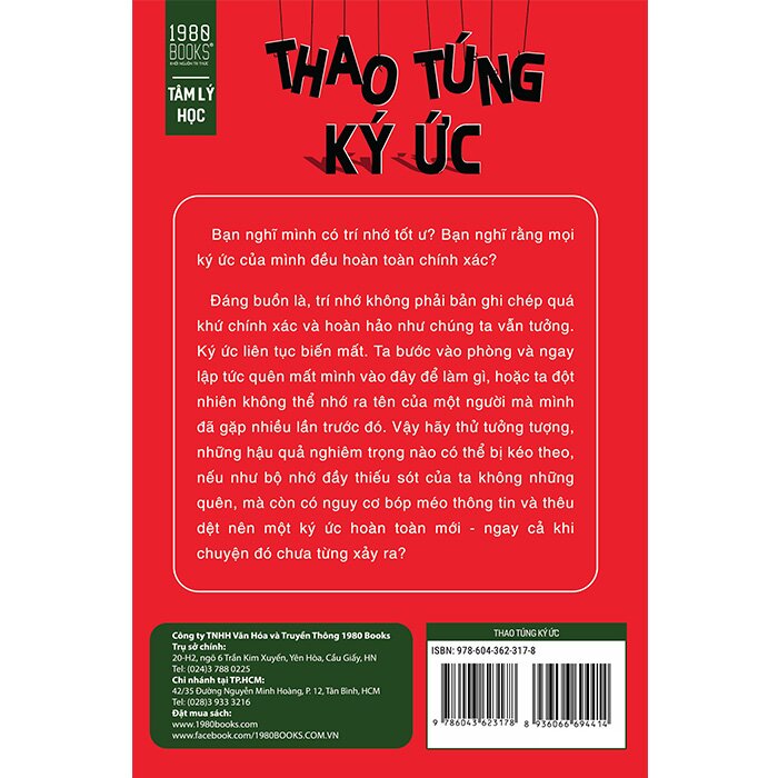 Lôi cuốn và đầy bất ngờ, “Thao túng ký ức” chính là một người bạn đồng hành trên con đường khám phá bản thân chúng ta dựa trên cơ sở khoa học về trí nhớ. Cuốn sách này sẽ giúp chúng ta hiểu hơn về cách ghi nhớ của não bộ, về tính đúng đắn của những ký ức mà ta sở hữu, khiến bạn phải đặt câu hỏi rằng bạn thực sự hiểu bản thân mình đến mức nào.