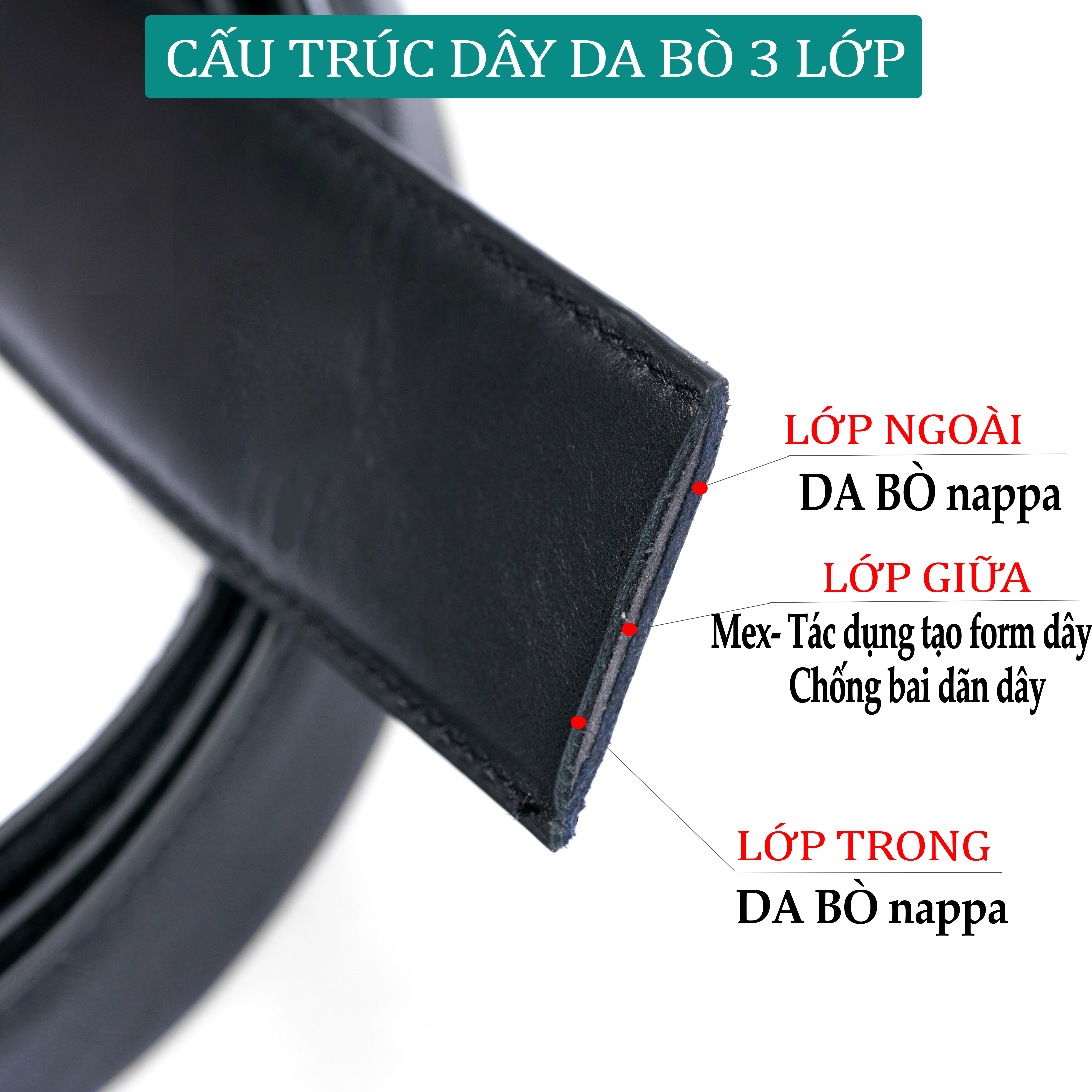Thắt lưng nam da bò cao cấp-3 lớp-màu đen-khóa tự động nhiều mặt