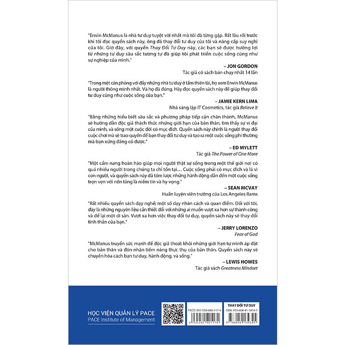 "Erwin McManus là nhà tư duy tuyệt vời nhất mà tôi đã từng gặp. Rất lâu rồi trước khi tôi đọc quyển sách này, ông đã thay đổi tư duy của tôi và nâng cấp suy nghĩ của tôi. Giờ đây, với quyển Thay Đổi Tư Duy này, các bạn sẽ được hưởng lợi từ những tư duy sâu sắc tương tự đã giúp tôi phát triển cuộc sống cũng như sự nghiệp của mình." - Jon Gordon; Tác giả có sách bán chạy nhất 14 lần