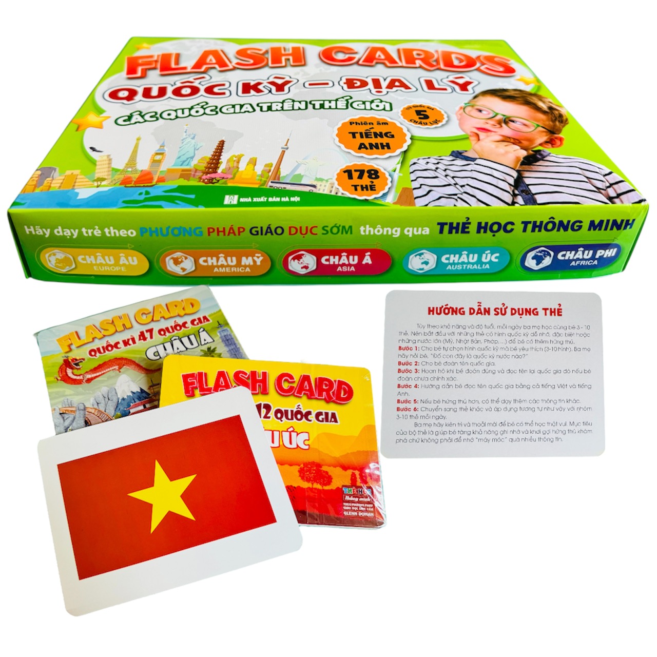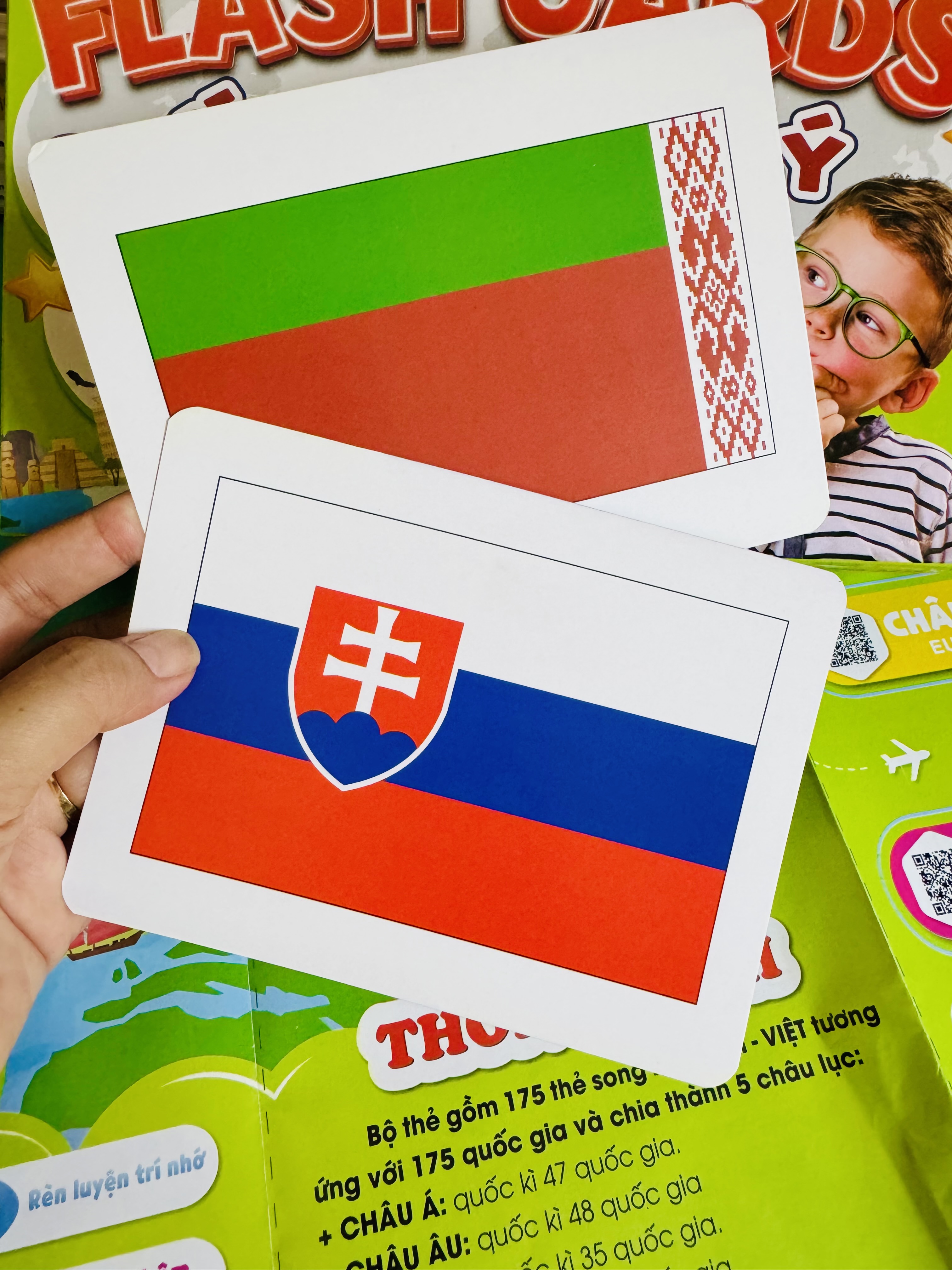 Tên sản phẩm: Bộ flash card_ 178 Thẻ cờ Quốc Kỳ - Địa lý các Quốc gia trên thế giới (173 Quốc gia + 5 Châu lục phiên âm Tiếng anh) – Tác giả: Nguyễn