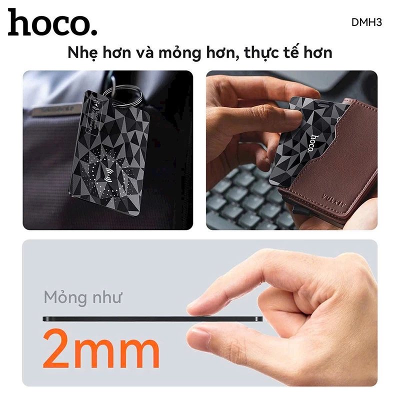 Thẻ định vị Ho.co DMH3 Siêu Mỏng pin 100mAh Chống Nước IP68 không cần tải app, sạc lại được bằng sạc không dây (CHỈ SỬ DỤNG CHO IOS)
