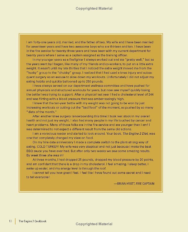 The Engine 2 Diet has sold hundreds of thousands of copies and inspired a plant-based food revolution. Featuring endorsements from top medical experts and a food line in Whole Foods Market, Engine 2 is the most trusted name in plant-based eating. Now, readers can bring the Engine 2 program into their kitchens with this cookbook companion to the original diet program. Engine 2 started in a firehouse in Texas, and if Texas firefighters love to eat this food, readers nationwide will eat it up, too! The Engine 2 Cookbook packs the life-saving promise of the Engine 2 program into more than 130 mouth-watering, crowd-pleasing recipes, including: