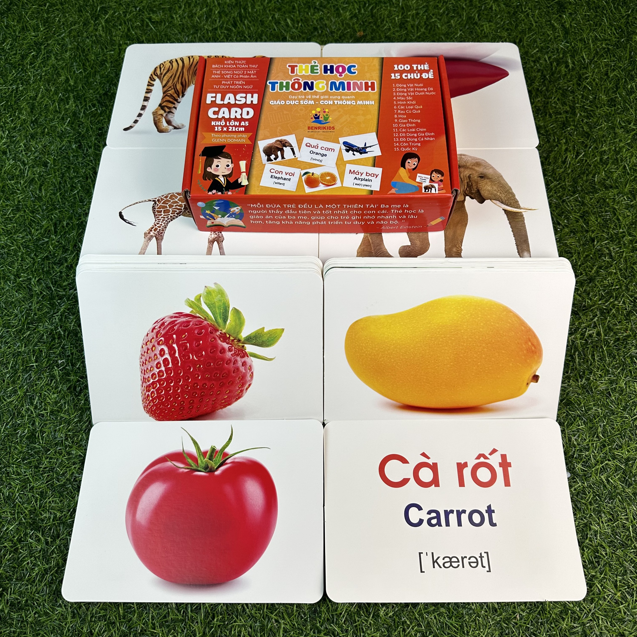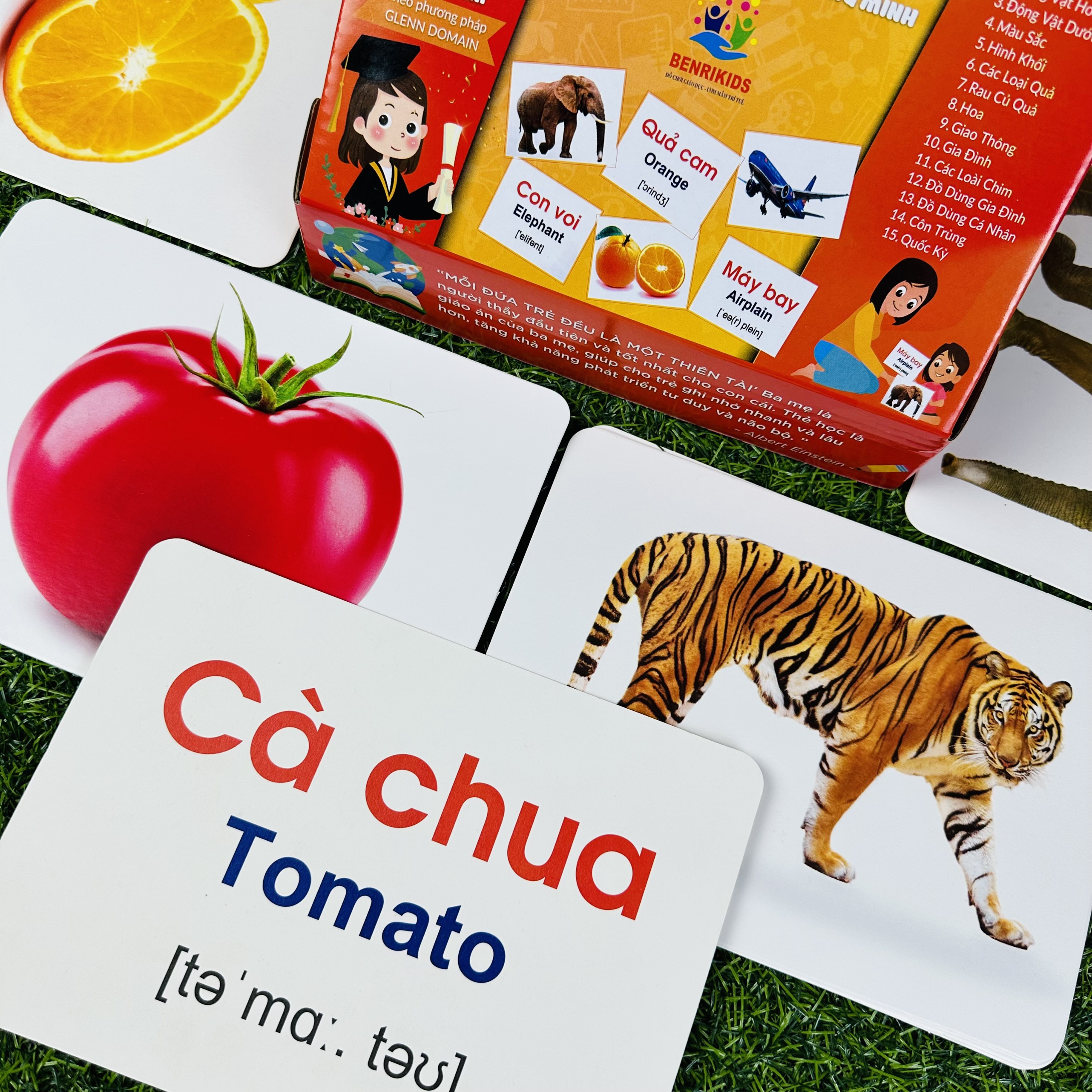 Bộ Thẻ Học Flash Card Thông Minh Cho Bé Loại Chuẩn Glenn Doman, cỡ a5, 15 Chủ Đề, Song Ngữ.