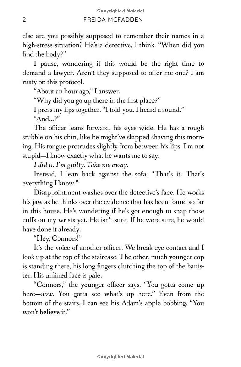 I try to ignore how Nina makes a mess just to watch me clean it up. How she tells strange lies about her own daughter. And how her husband Andrew seems more broken every day. But as I look into Andrew’s handsome brown eyes, so full of pain, it’s hard not to imagine what it would be like to live Nina’s life. The walk-in closet, the fancy car, the perfect husband.