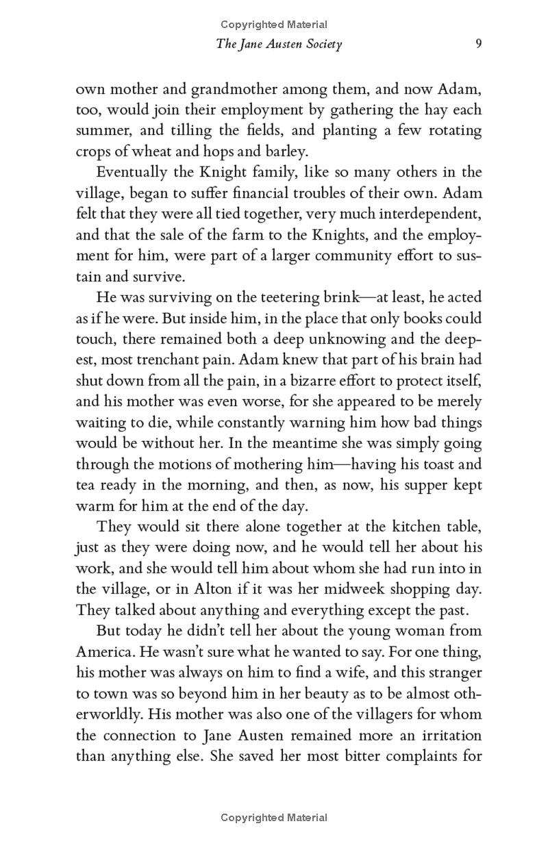 One hundred and fifty years ago, Chawton was the final home of Jane Austen, one of England's finest novelists. Now it's home to a few distant relatives and their diminishing estate. With the last bit of Austen's legacy threatened, a group of disparate individuals come together to preserve both Jane Austen's home and her legacy. These people-a laborer, a young widow, the local doctor, and a movie star, among others-could not be more different and yet they are united in their love for the works and words of Austen. As each of them endures their own quiet struggle with loss and trauma, some from the recent war, others from more distant tragedies, they rally together to create the Jane Austen Society.