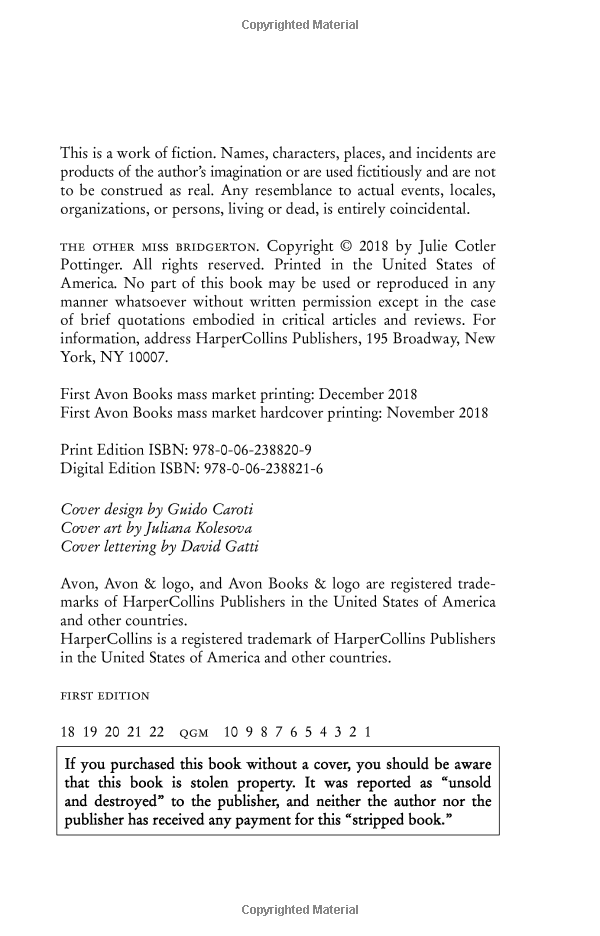 When Andrew learns that she is a Bridgerton, he knows he will likely have to wed her to avert a scandal—though Poppy has no idea that he is the son of an earl and neighbor to her aristocratic cousins in Kent. On the high seas, their war of words soon gives way to an intoxicating passion. But when Andrew’s secret is revealed, will his declaration of love be enough to capture her