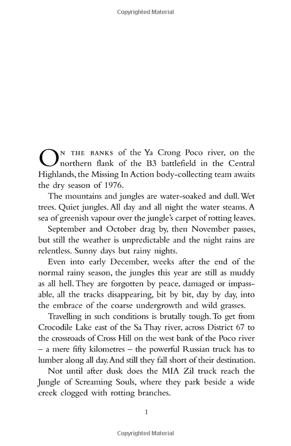 Kien’s job is to search the Jungle of Screaming Souls for corpses. He knows the area well - this was where, in the dry season of 1969, his battalion was obliterated by American napalm and helicopter gunfire. Kien was one of only ten survivors. This book is his attempt to understand the eleven years of his life he gave to a senseless war.