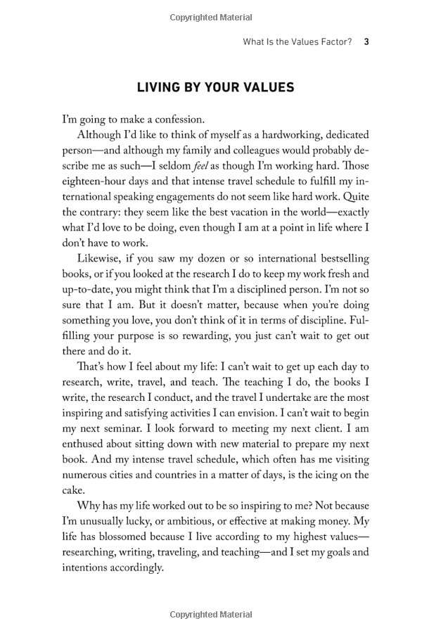 The Values Factor shows you how to create a life in which every minute can be inspiring and fulfilling. The first step is to identify what you find most meaningful the values in life that are most important to you. Once you understand your own unique values and align your life accordingly, you can achieve fulfillment in every aspect of your life: deepening your loving relationships, creating an inspiring career, establishing financial freedom, and tapping into a rich spiritual life.
