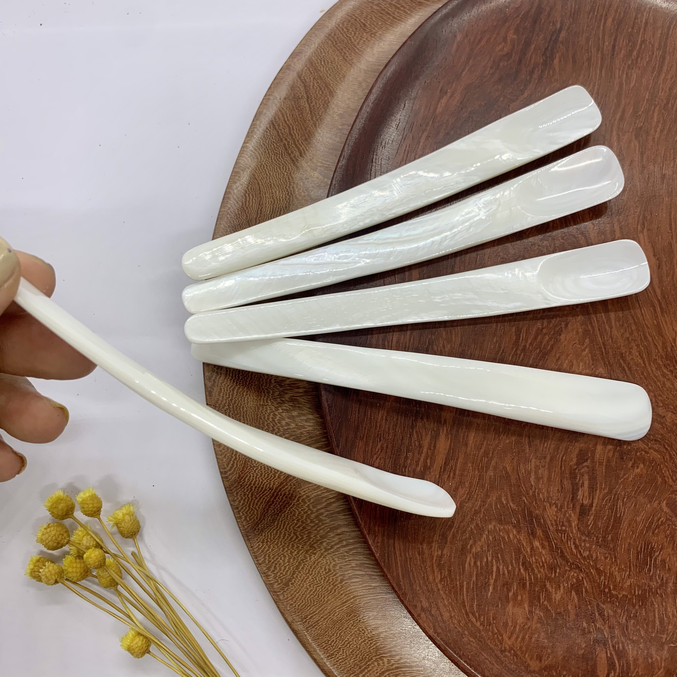 Phụ kiện thìa vỏ xà cừ vừa sử dụng chụp ảnh hoặc decor trang trí cho nhà hàng, món ăn.