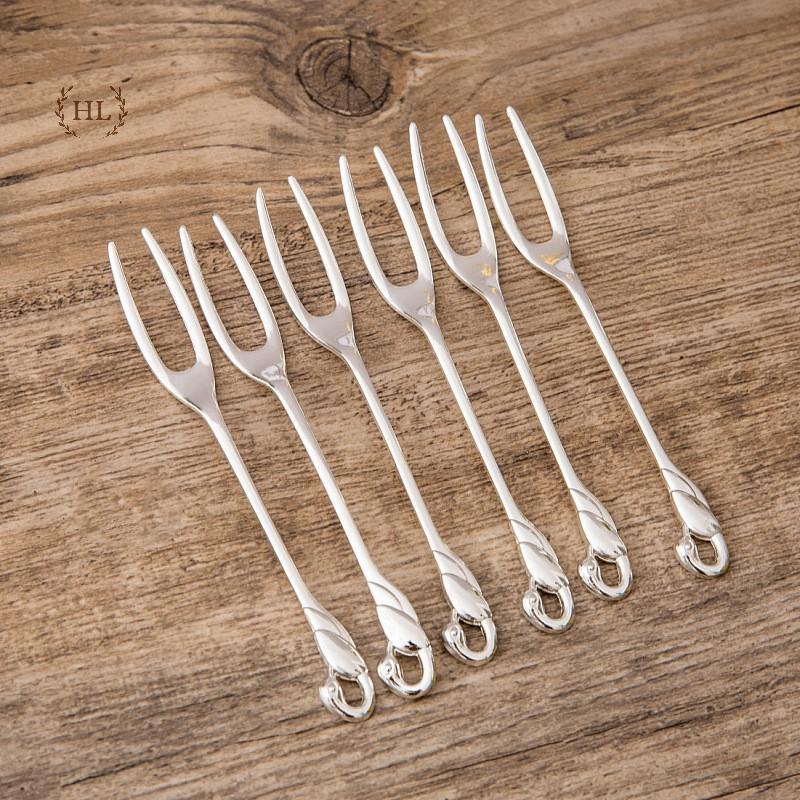 Bộ dĩa ăn hoa quả inox cao cấp đế thiên nga nghệ thuật sang trọng, nĩa ăn trái cây kháng khuẩn HADU