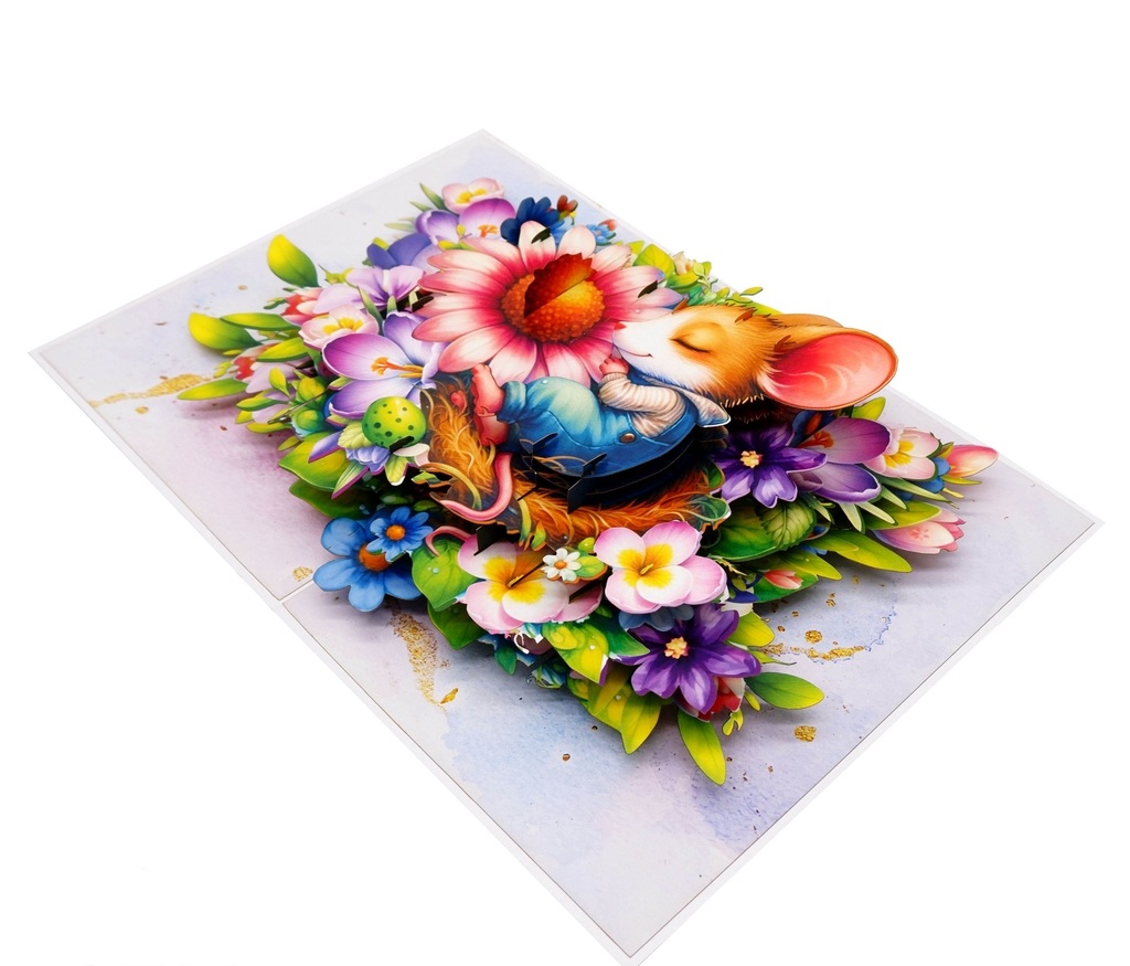 ✨Thiệp 3D Chuột Con Ngủ Trong Vườn Hoa – Thiệp Pop Up Dễ Thương, Độc Đáo Tặng Sinh Nhật, Lễ Tình Nhân, Ngày Quốc Tế Thiếu Nhi, F59