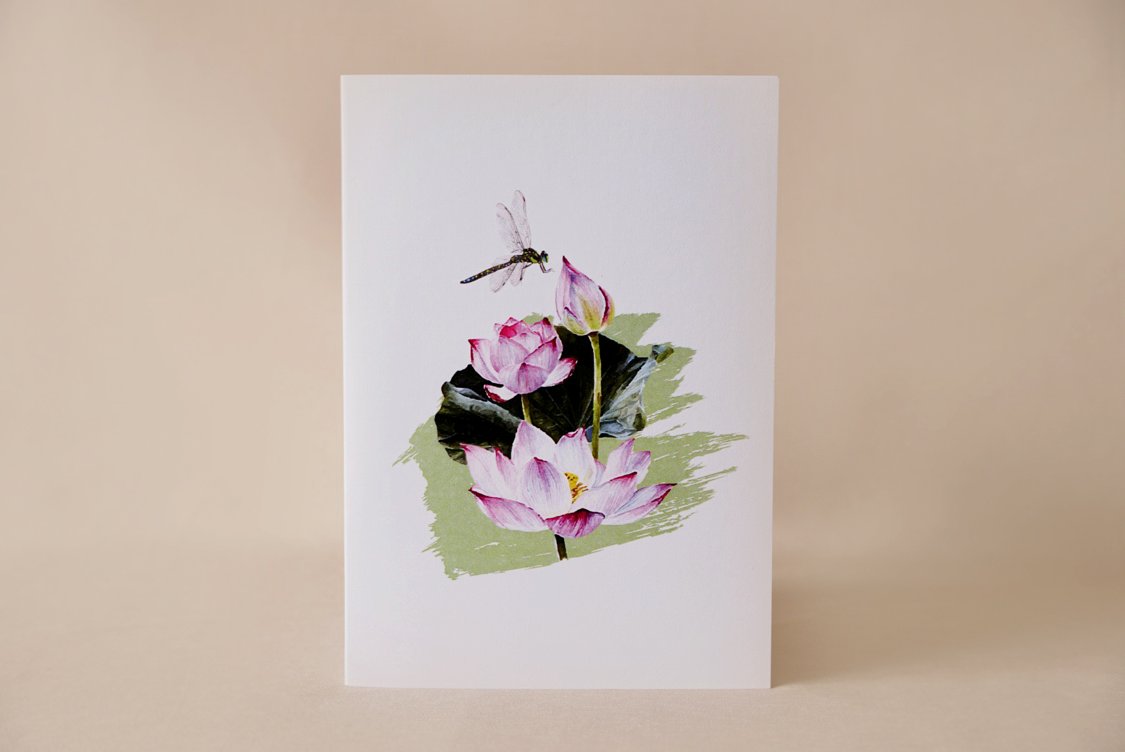 ✨Thiệp 3D Pop Up Chuồn Chuồn & Hoa Sen – Thiệp Nghệ Thuật, Thiệp Chúc Mừng, Sinh Nhật, Độc Đáo, F21