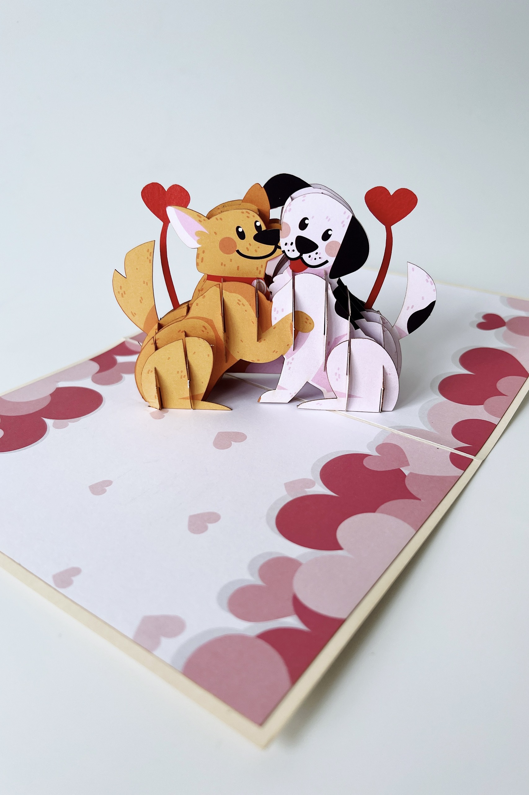 thiệp 3d, thiệp pop up, thiệp nổi, thiệp đôi chó, thiệp tình yêu, thiệp valentine, thiệp sinh nhật lãng mạn, thiệp kỷ niệm, love dog card, thiệp handmade độc đáo