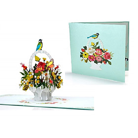 Gửi gắm yêu thương và sự trân trọng với thiệp 3D Pop Up giỏ hoa & chim. Khi mở ra, hình ảnh giỏ hoa rực rỡ đầy màu sắc bật nổi, kèm chú chim nhỏ