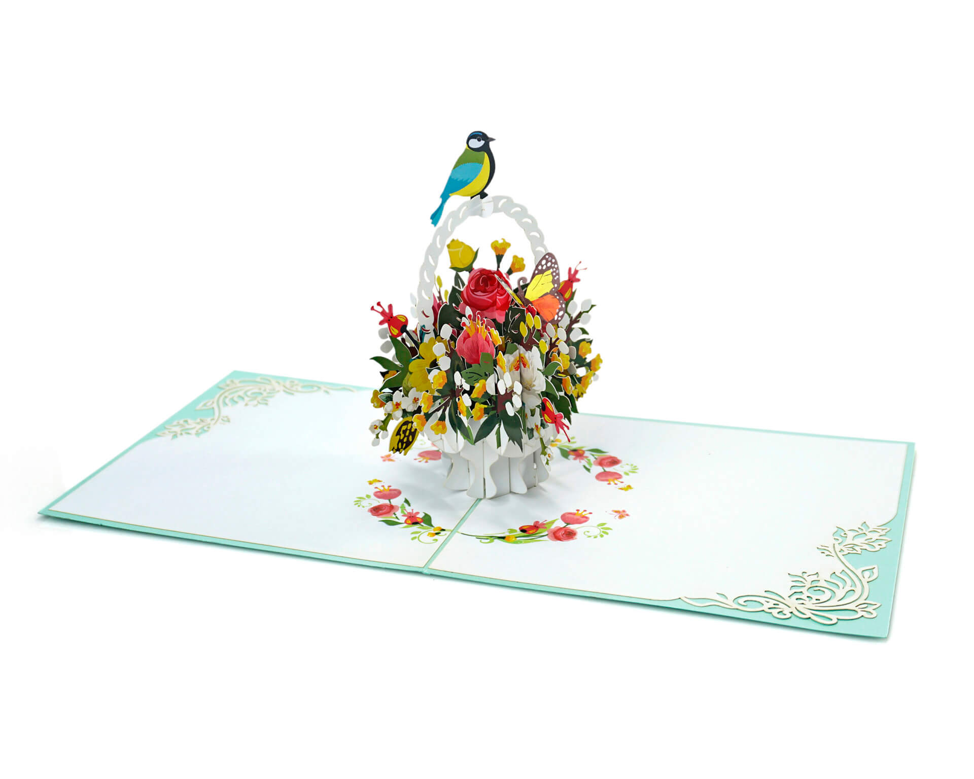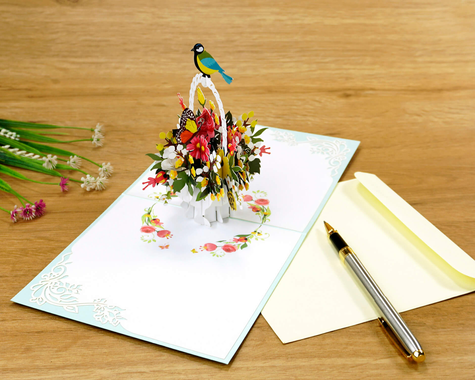 ✨Thiệp 3D Pop Up Giỏ Hoa & Chim – Thiệp Hoa Chúc Mừng, Sinh Nhật, Tri Ân, Độc Đáo, F18