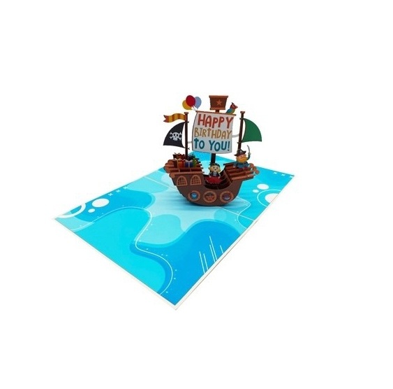 thiệp 3d, thiệp pop up, thiệp nổi, thiệp sinh nhật bé trai, thiệp thuyền cướp biển, thiệp hải tặc, thiệp sinh nhật vui nhộn, thiệp chúc mừng sinh nhật, pirate ship birthday card, thiệp handmade độc đáo