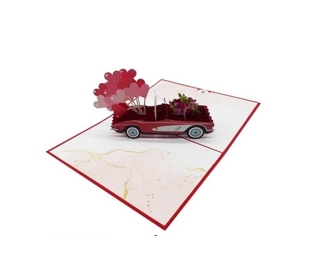 Gửi gắm lời yêu thương ngọt ngào với thiệp 3D Pop Up Xe Tình Yêu. Khi mở ra, chiếc xe tình yêu bật nổi với tông đỏ – trắng nổi bật, trên xe là cặp
