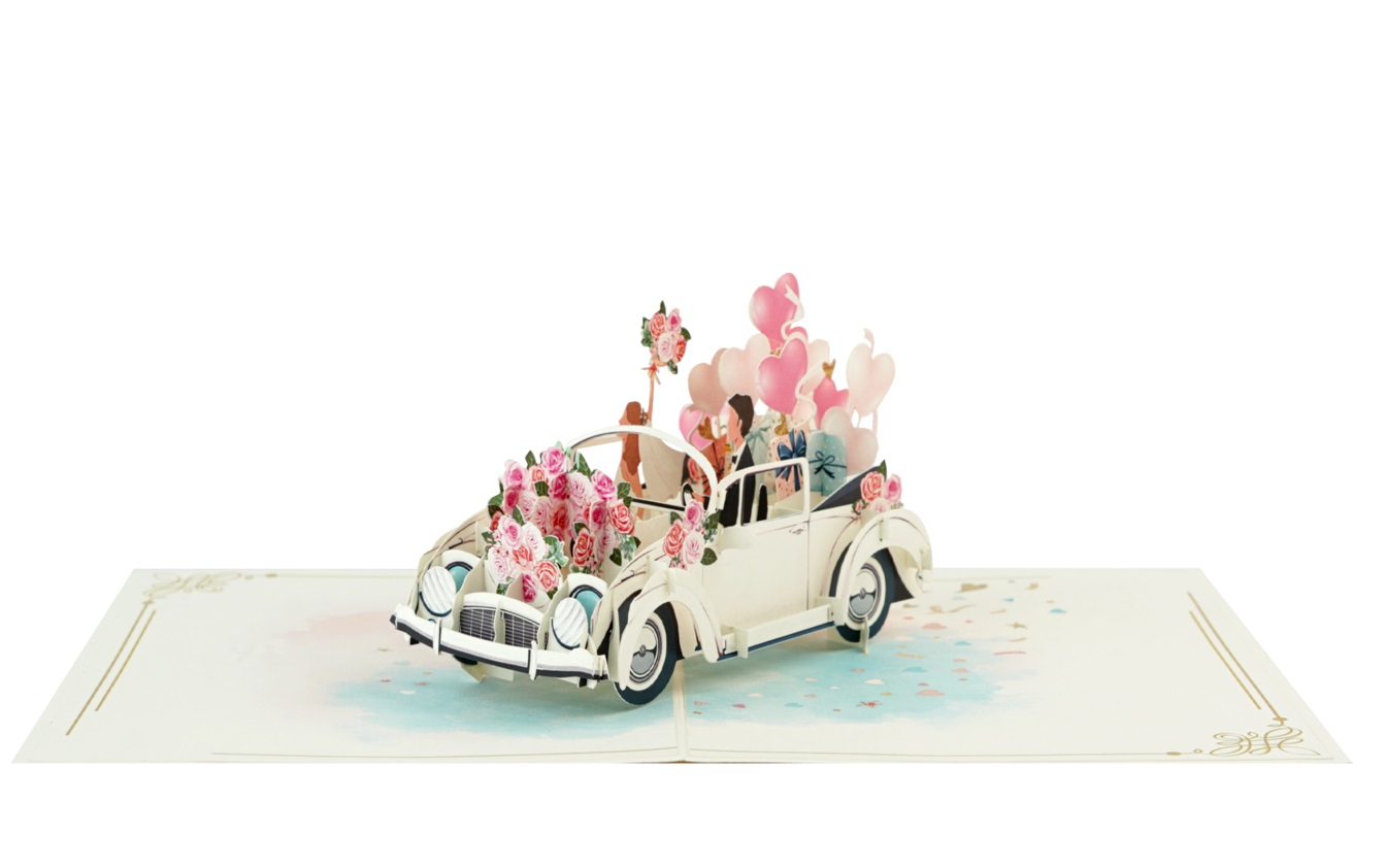 thiệp 3d, thiệp pop up, thiệp nổi, thiệp cưới, thiệp xe cưới, thiệp just married, thiệp wedding, thiệp chúc mừng đám cưới, wedding card, thiệp handmade cao cấp