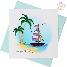 ✨Thiệp sinh nhật giấy xoắn - con thuyền nhỏ - size 15x15cm