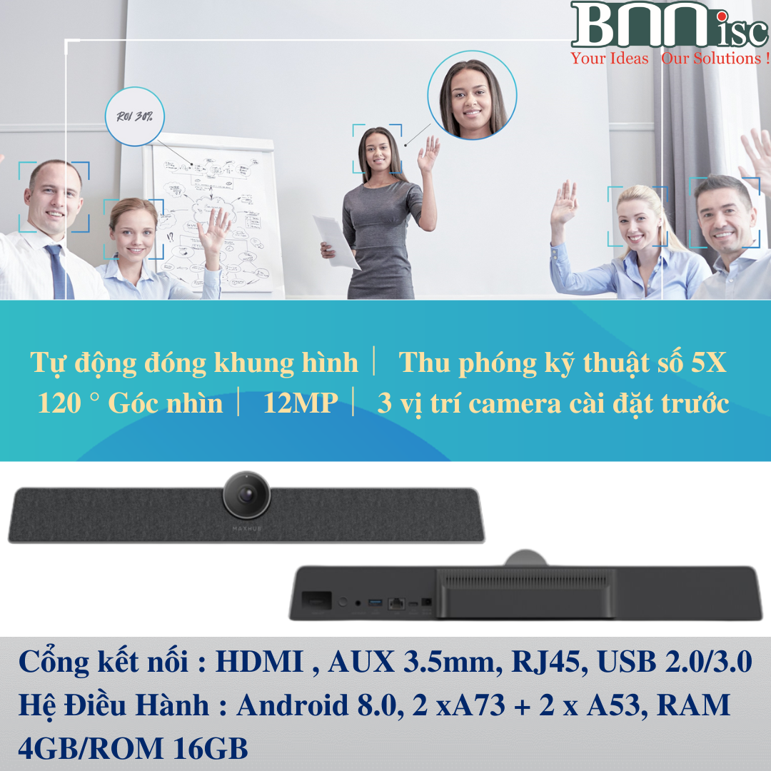 Hệ thống Hội Nghị Truyền Hình chuyên nghiệp MaxHub Camera : - Len kính Sony Type 1/2.3, CMOS, 12.3 MP , 4K@30fps, e-PTZ - Góc quay 120° , Lên/Xuống 15° , Tự động cân bằng